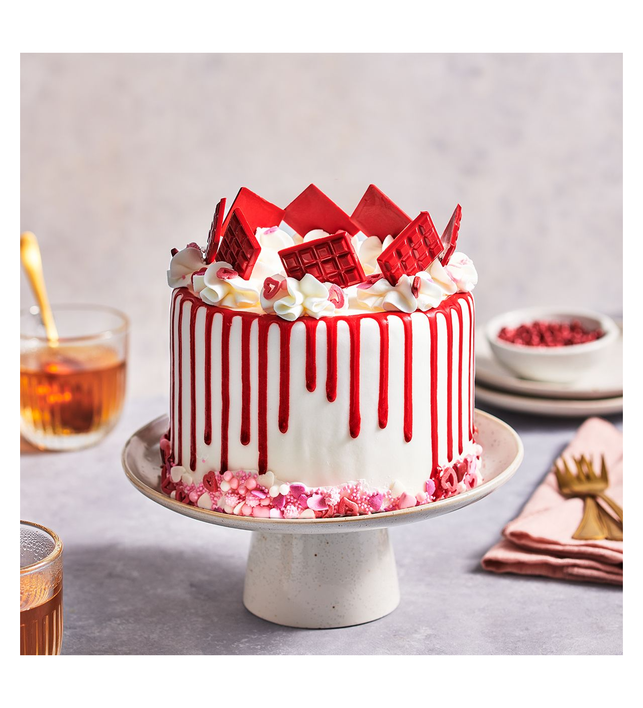 Associez à ce glaçage coulure un goût chocolaté irrésistible qui complétera parfaitement la brillance de la couleur, offrant à vos pâtisseries un mélange parfait de visuel et de saveur. Simple à utiliser, il vous suffit de chauffer le glaçage rouge au micro-ondes pendant 15 à 20 secondes, de secouer le flacon et de l’appliquer pour obtenir des coulures (drip) parfaites.