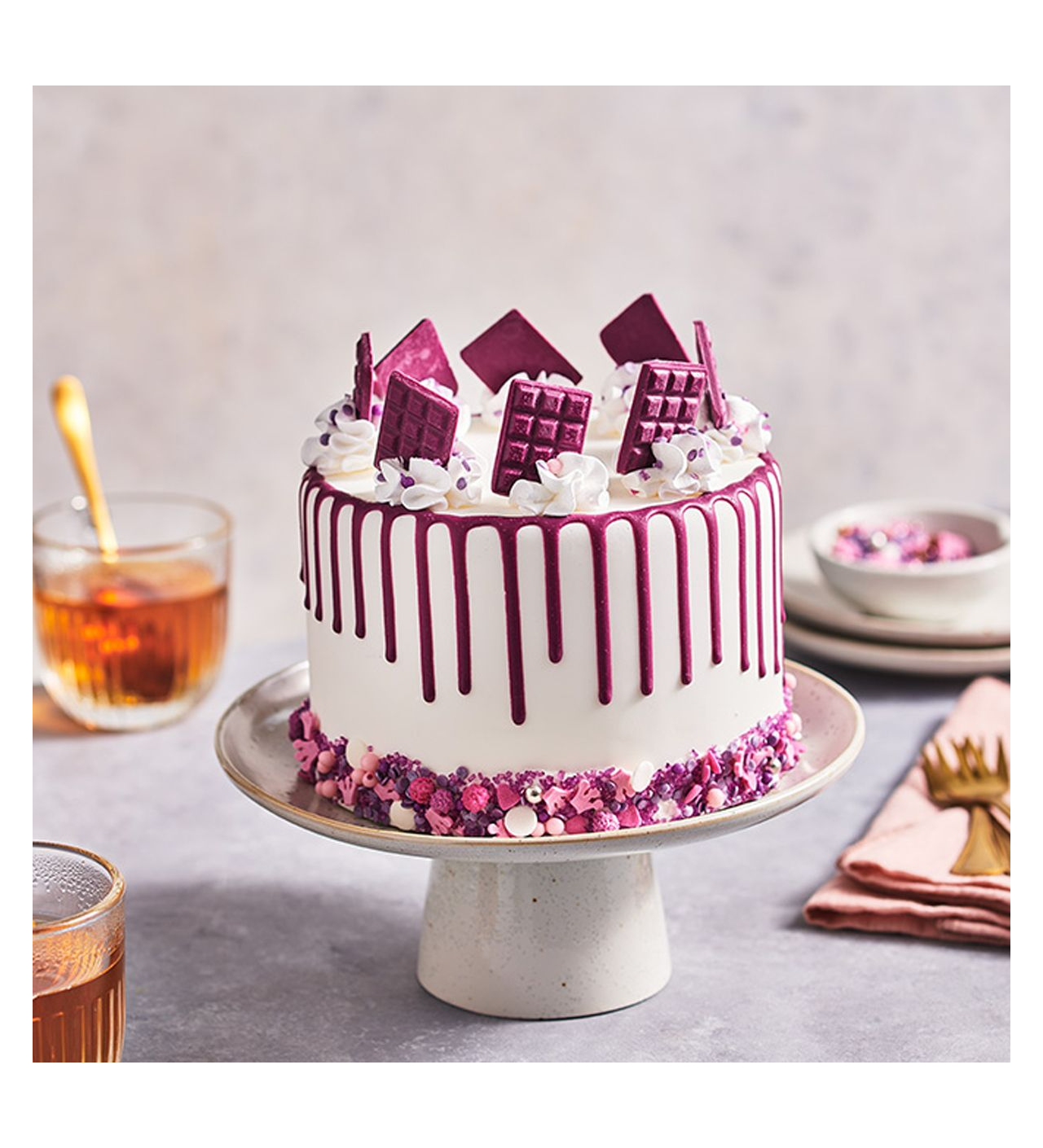 Idéal pour des occasions spéciales, ce glaçage violet créera des coulures parfaites sur vos gâteaux, leur donnant une allure à la fois moderne et sophistiquée. Facile à utiliser, il suffit de chauffer le glaçage au micro-ondes pendant 15 à 20 secondes, de secouer le flacon, puis de l'appliquer pour obtenir des drips impeccables.