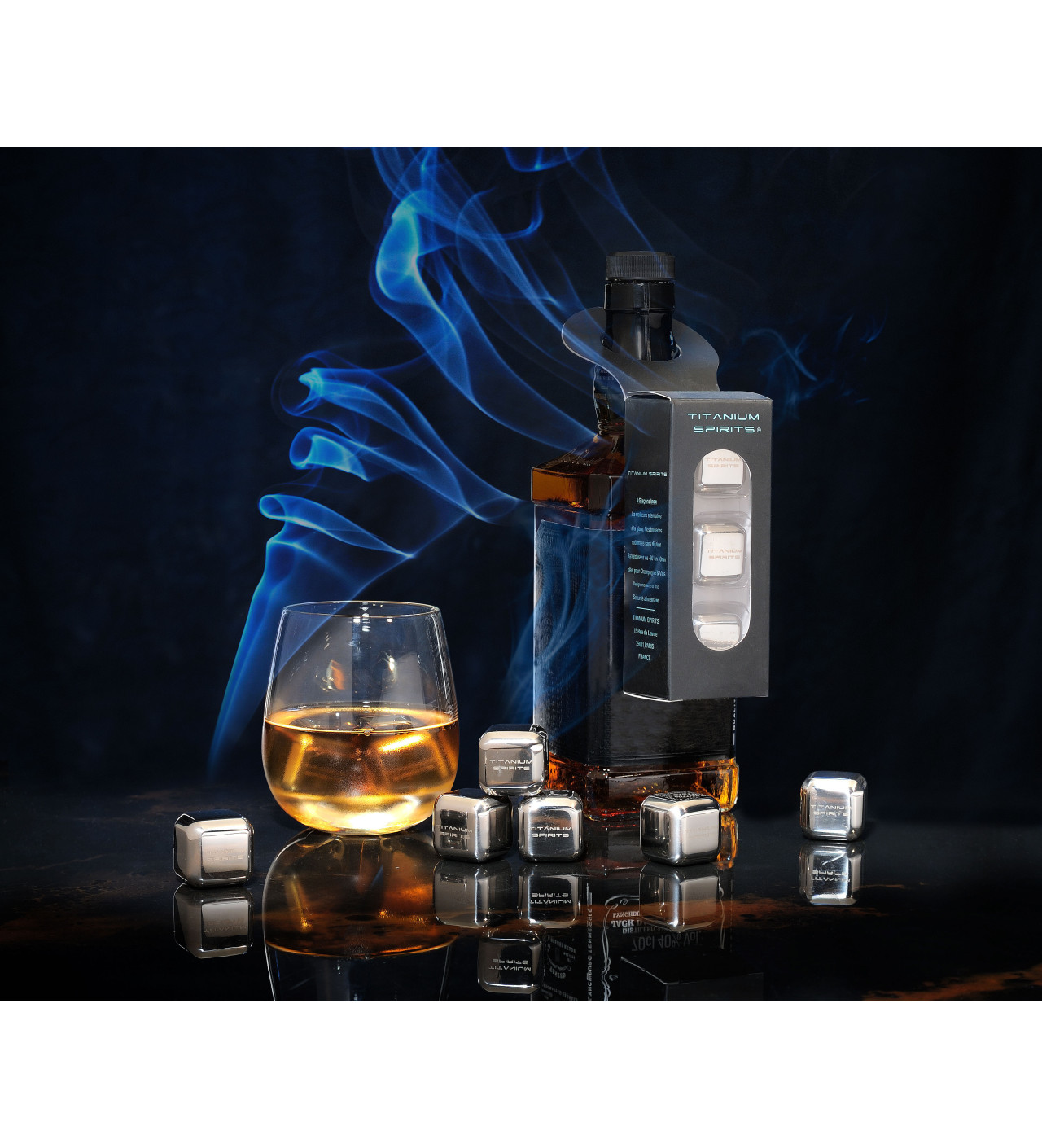 Inspirés des pierres à whisky ces glaçons sans eau, sont spécialement conçus pour rafraîchir vos alcools les plus fins tels que le champagne et le vin.