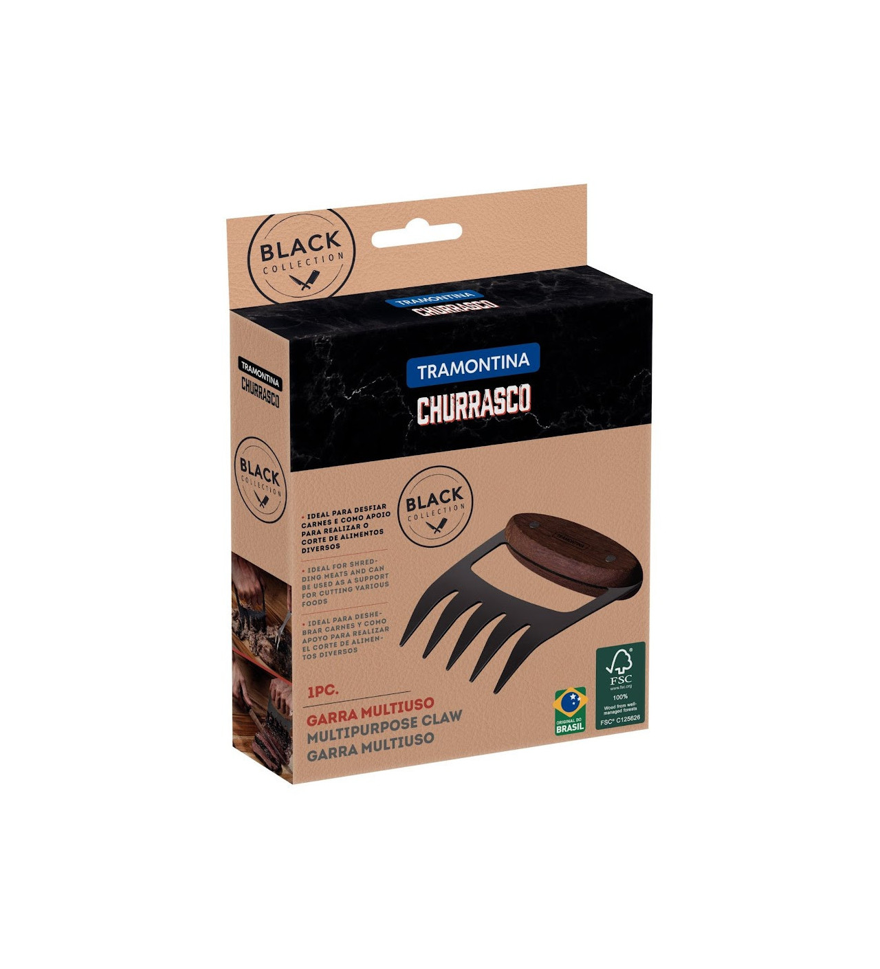 La griffe d’ours en inox et bois Tramontina possède aussi un aspect esthétique qui saura faire plaisir aux amateurs de beaux objets ou les amoureux de la cuisine. Les dents et le bois sont noircis, apportant ainsi une touche distinguée à vos ustensiles de cuisine.