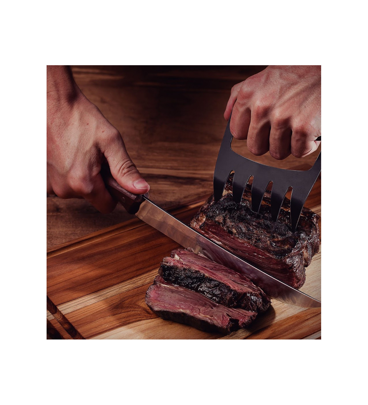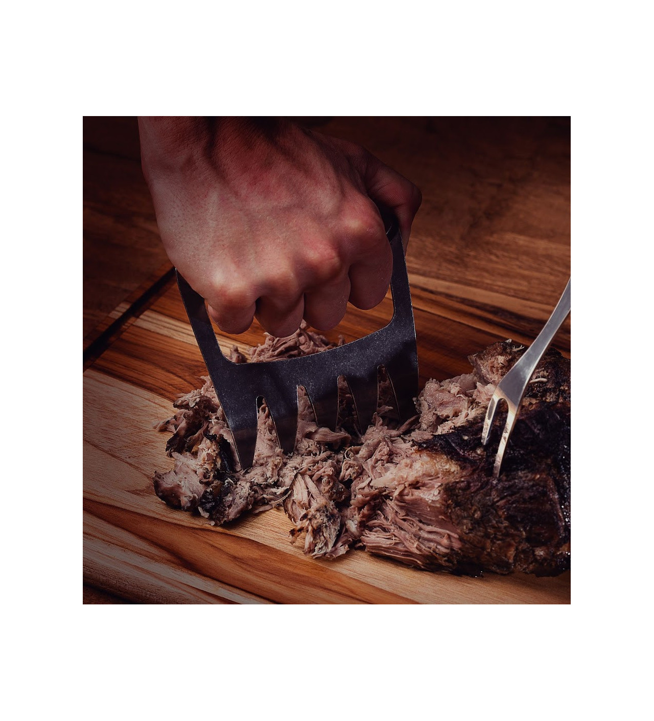 Offrant une excellente prise en main grâce à sa poignée en bois ergonomique, cette griffe de cuisine est pensée pour vous servir de façon durable. En effet, ses dents sont en inox robuste et s’accrocheront sans souci à la chair de vos pièces de viandes. Vous pourrez ainsi les maintenir en place pour les couper ou bien les effilocher sans efforts.