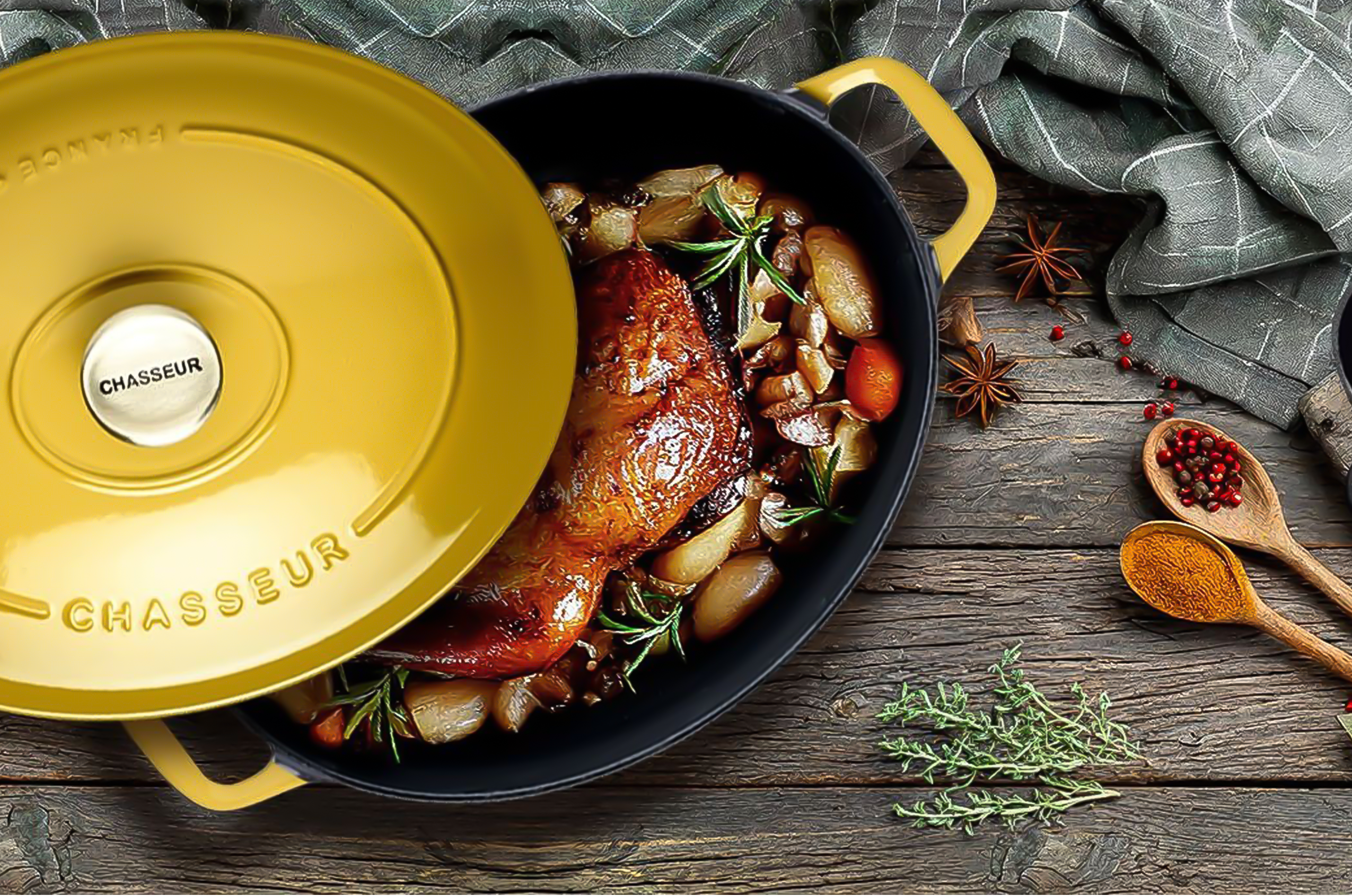 Depuis 1924, la marque Chasseur perpétue un savoir-faire artisanal d'exception. Désormais reconnue dans le monde entier, notamment pours ses cocottes, elle participe au rayonnement de la gastronomie française. Tous les ustensiles de cuisson sont fabriqués en fonte, bénéficient du label Origine France Garantie et sont compatibles avec tous les feux. Explorez dès maintenant les différentes nuances émaillées à la main en France.