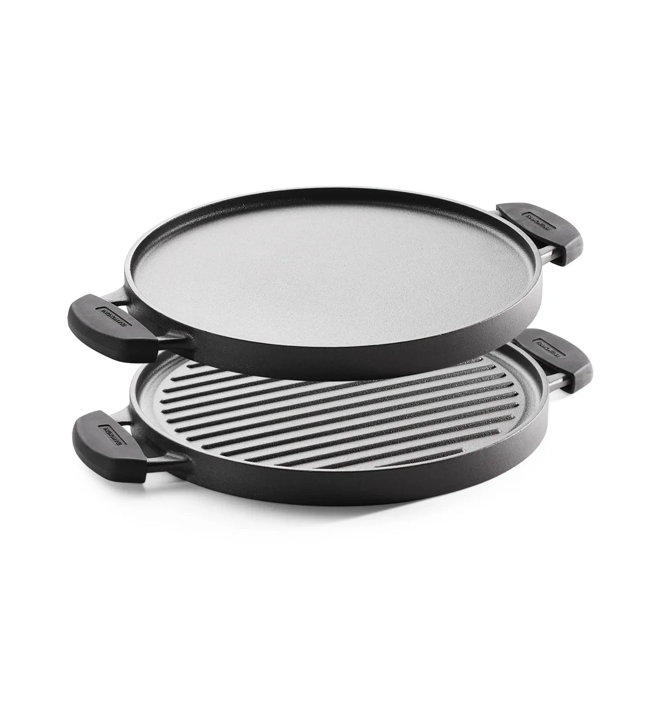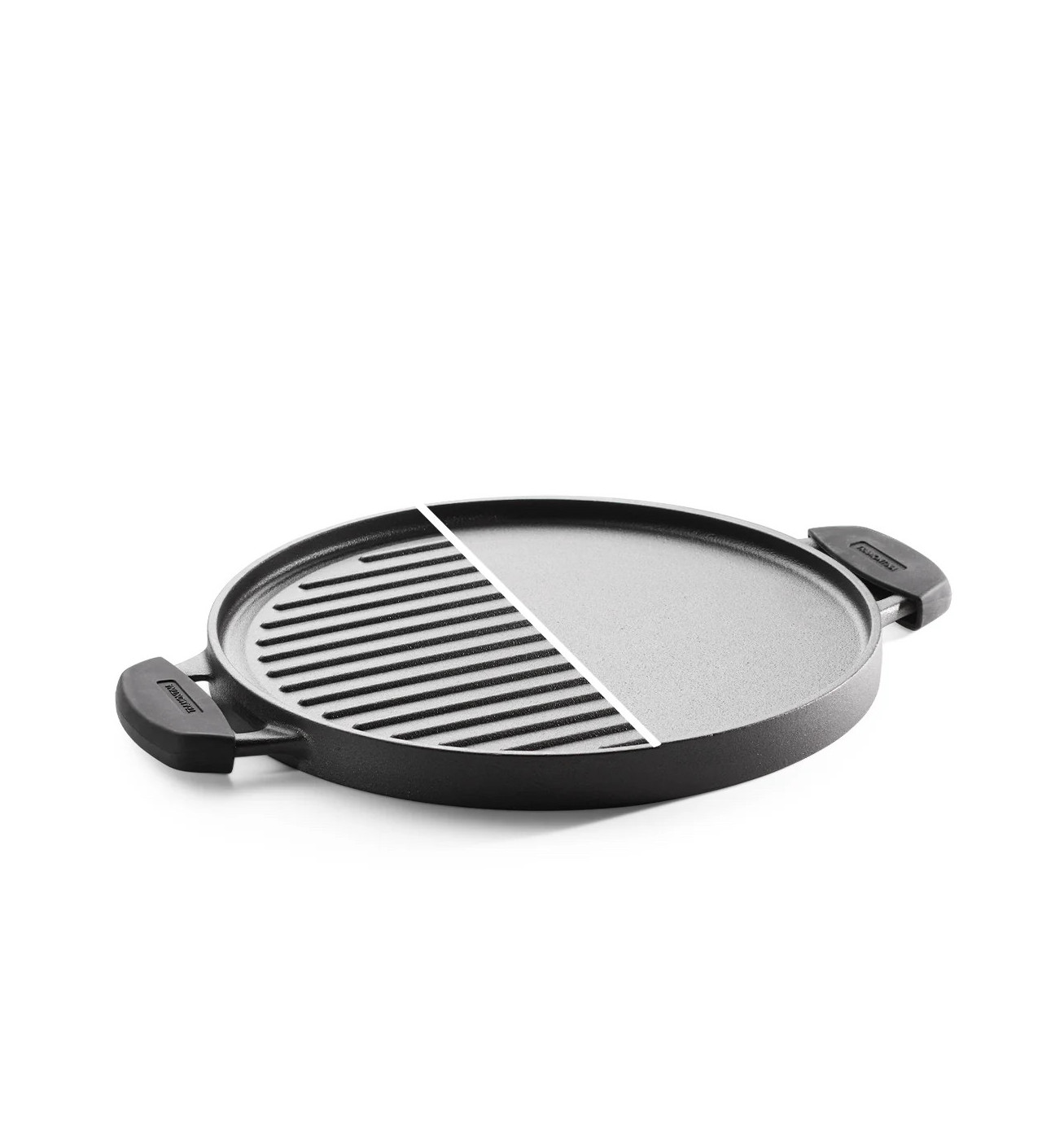 Ce grill en fonte rond offre une belle surface de cuisson qu’il vous suffira de placer sur votre plaque au gaz ou à l’induction. Il fera ensuite circuler la chaleur de façon homogène pour garantir une belle cuisson de tous vos aliments. Changez simplement le côté du grill que vous utilisez en fonction des ingrédients que vous avez.