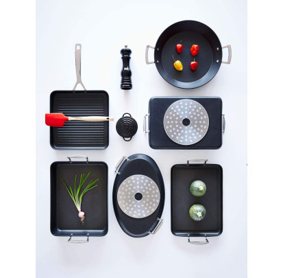 Tous les jus de cuisson pourront être récupérés aisément grâce au bec verseur sur le côté du grill. Vous pourrez ensuite en faire des sauces ou le servir tel quel pour accompagner votre repas. Comme le grill rond Tramontina est pré-culotté, vous n’aurez besoin que de peu de matières grasses pour cuisiner et profiterez ainsi de plats plus sains. Profitez dès à présent de ce bijou de la cuisson dans votre cuisine !