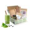 Ce kit contient tout ce qu'il vous faut pour une pause bien-être savoureuse, 8 pailles XXL, 20 g de thé vert matcha Bio pour une touche de fraîcheur et d'énergie, 150 g de miel au thé matcha pour adoucir le tout, et 250 g de perles de tapioca, qui ajouteront cette texture irrésistible à chaque gorgée. Un véritable régal, à la fois réconfortant et énergisant.