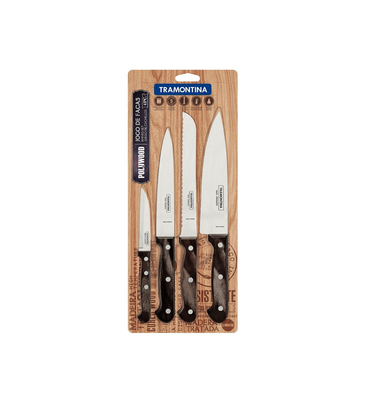 Kit de Couteaux de Cuisine Inox et Technobois Tramontina