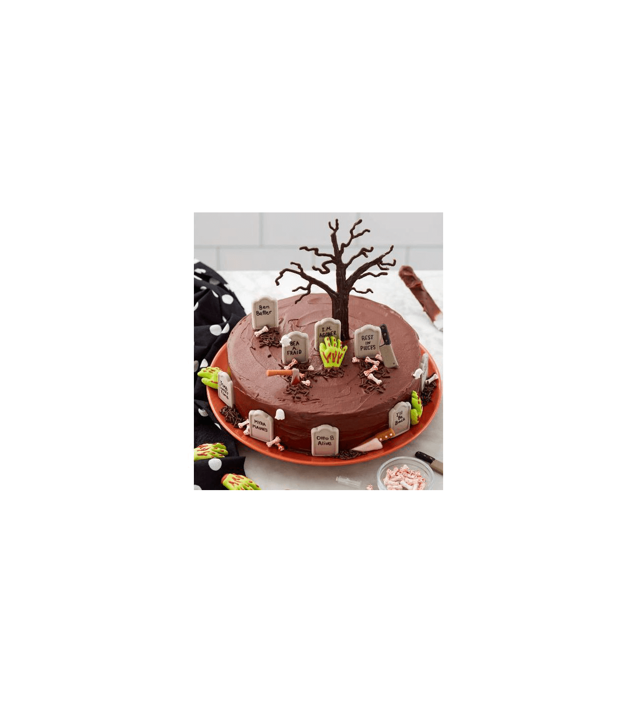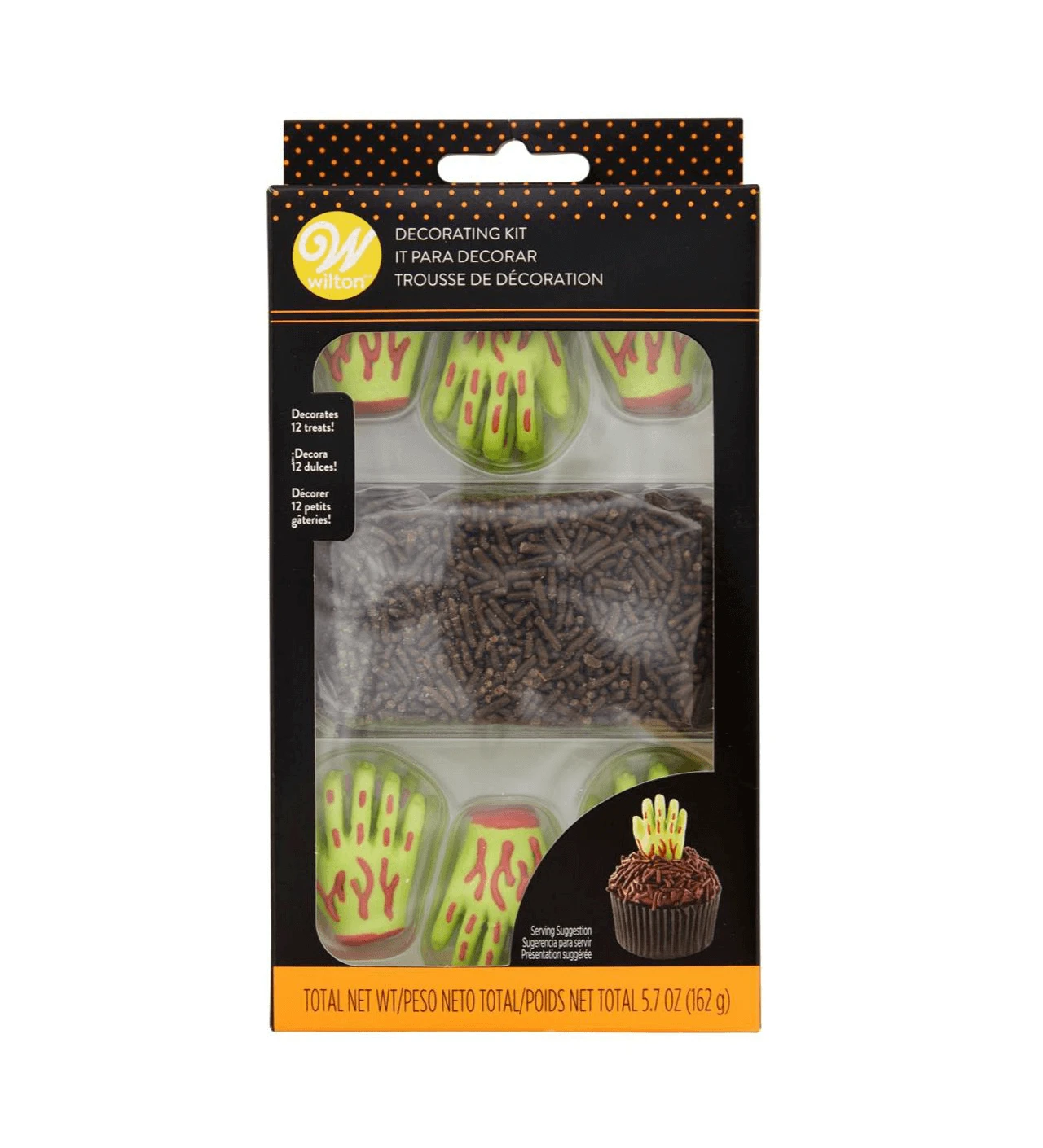 Pour Halloween, jouez le jeu de la terreur jusque dans vos pâtisseries grâce au Kit Décoration Gâteau Main de Zombie 12 pièces Wilton.