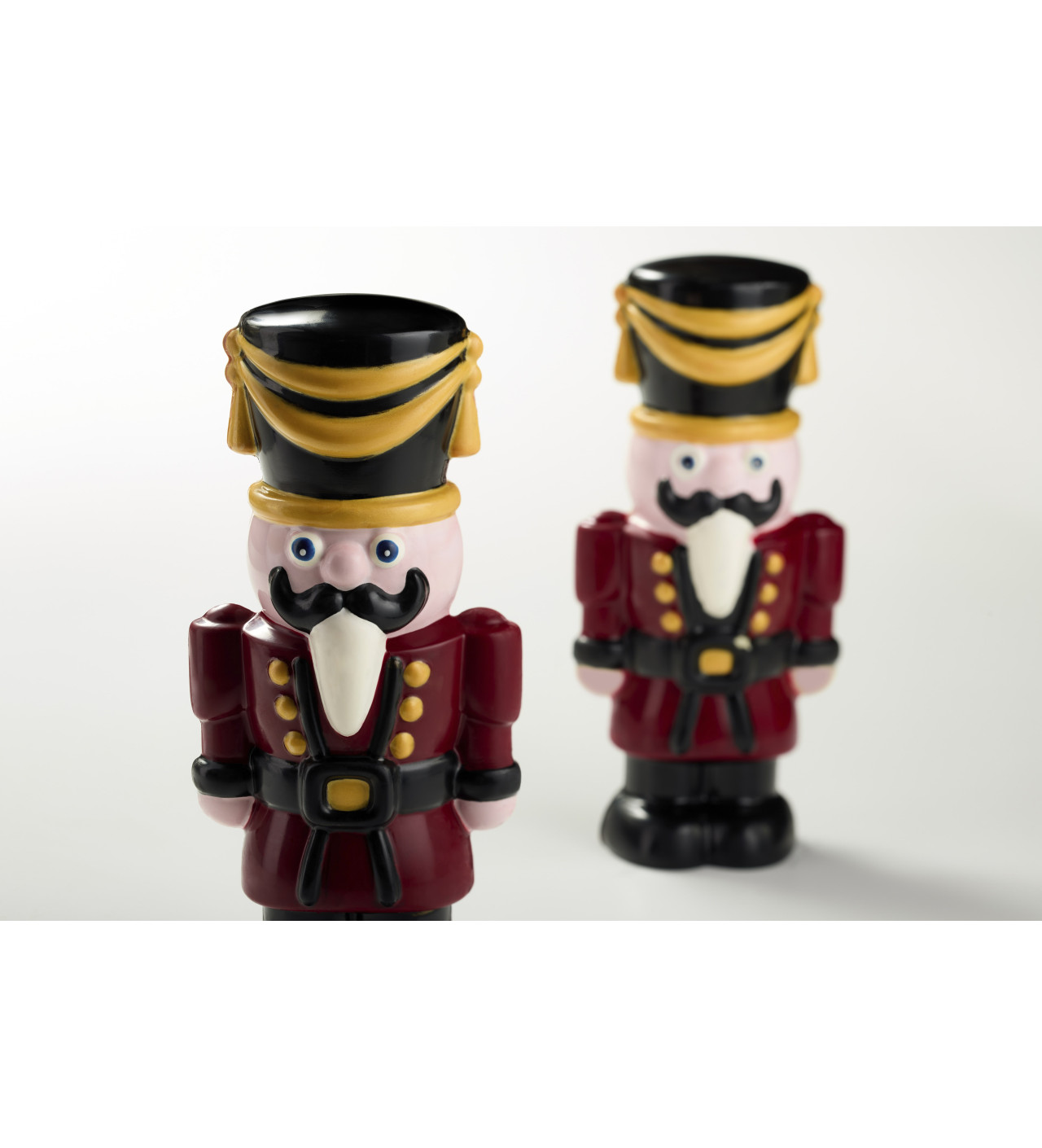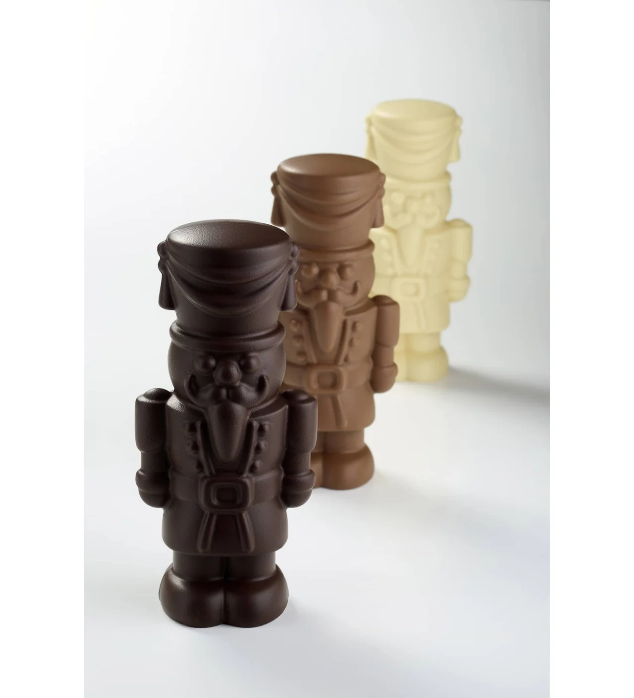Inspirés des célèbres personnages de Noël, ces moules professionnels permettent de réaliser deux soldats casse-noisette en chocolat, parfaits pour offrir ou pour savourer secrètement.