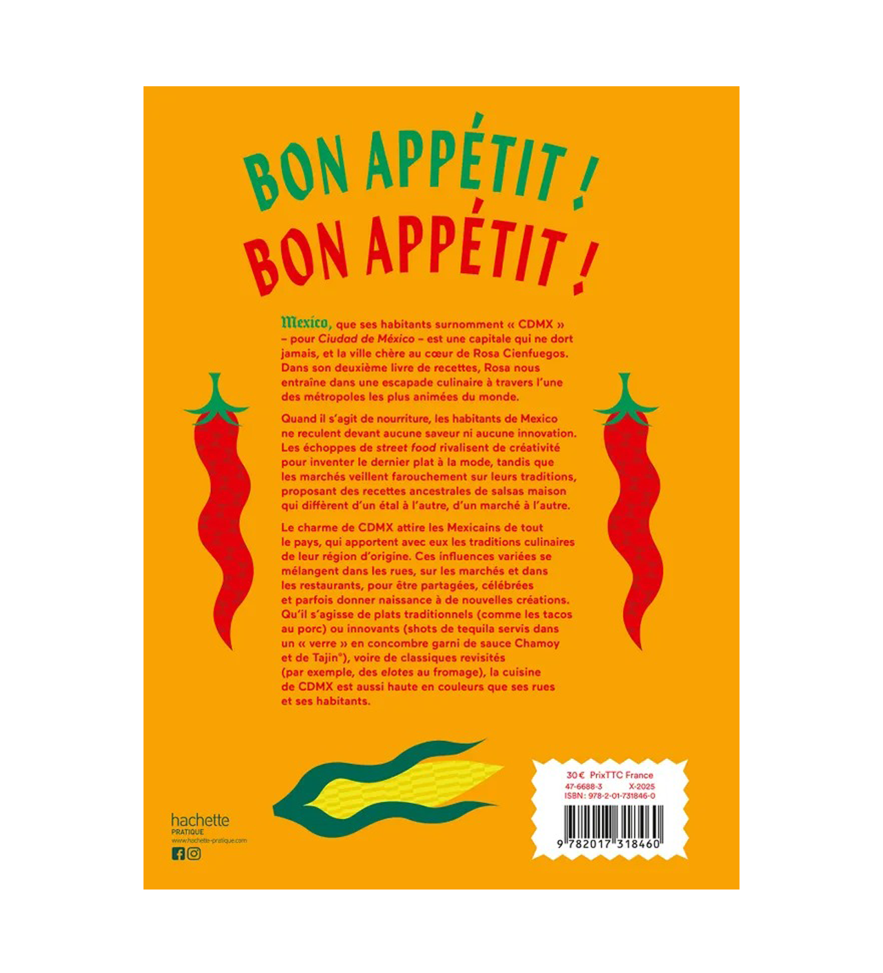 Découvrez toute une palette de parfums et de saveurs inédits en vous plongeant dans les pages de ce livre de recettes. La cheffe Rosa Cienfuegos, une native de la capitale mexicaine, vous embarque avec elle dans ce voyage gourmand. Après avoir ouvert deux restaurants, elle vous livre ses secrets pour des plats vibrants de couleurs et de goûts.