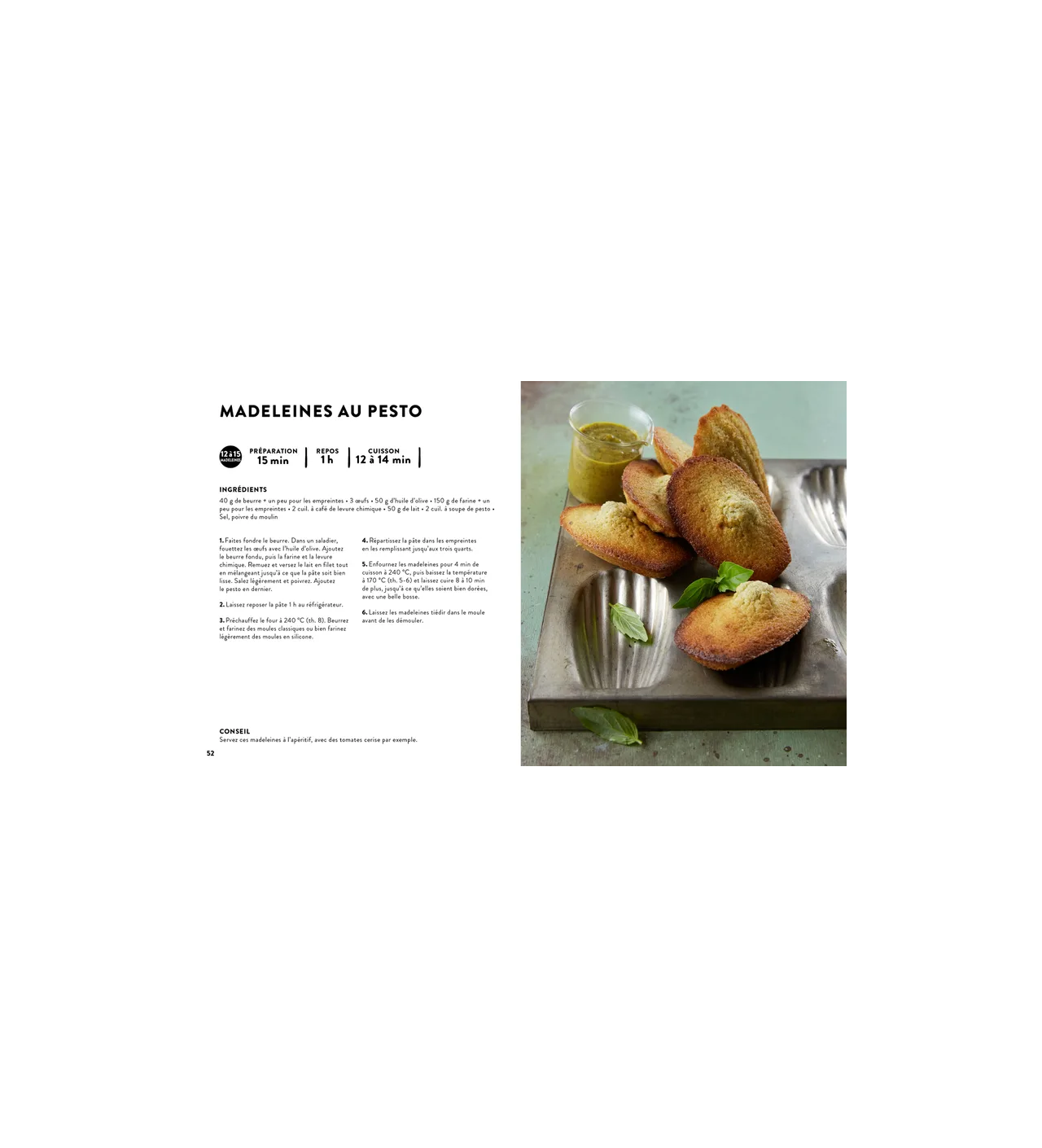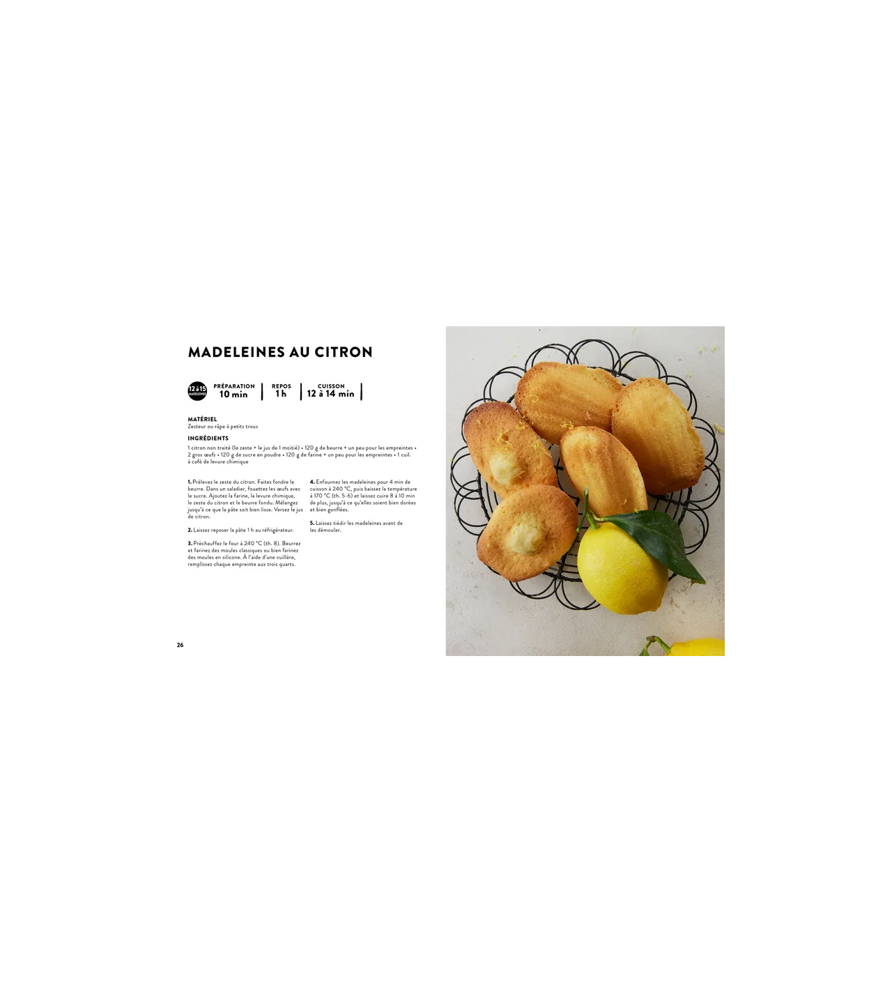 Ce livre de recettes comporte des déclinaisons sucrées et salées des gâteaux iconiques pour vous ouvrir un monde de possibilités savoureuses. Choisissez celle qui vous attire le plus sur le moment, puis suivez les étapes claires et simples. Le livre de recettes Madeleines et Financiers est un indispensable de tous les cuisiniers en quête d’idées simples.