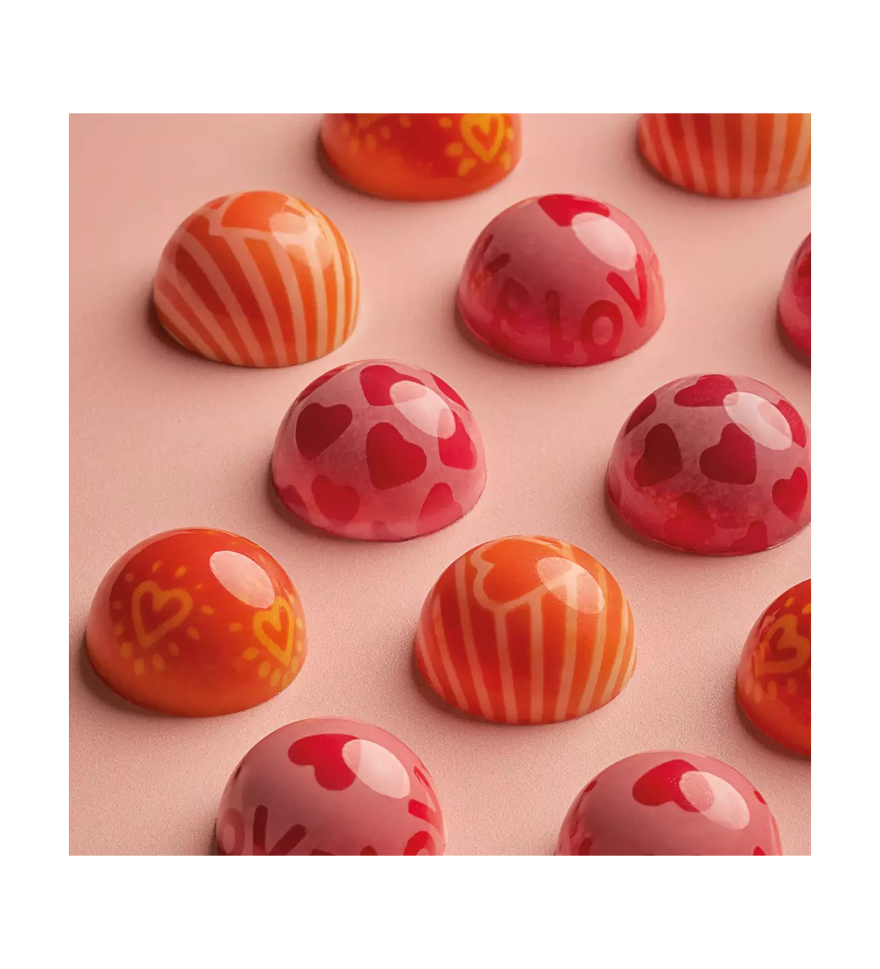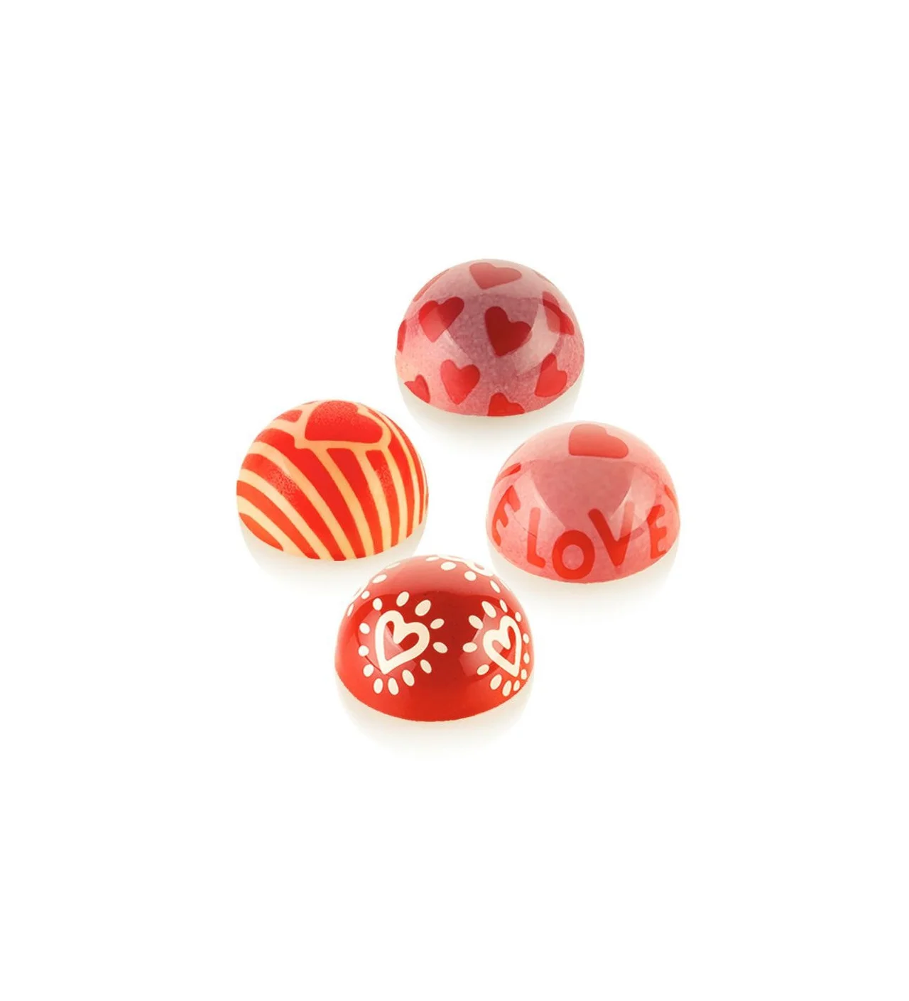 Avec le lot de tampons à chocolat Saint Valentin Silikomart, vous pourrez créer des chocolats sur-mesure qui feront le bonheur de votre aimé. Il vous suffit pour cela d’apposer les tampons à décor pour chocolat dans les empreintes colorées de votre moule à chocolat. Ils y laisseront une trace délicate qu’il vous suffira ensuite de recouvrir de chocolat.