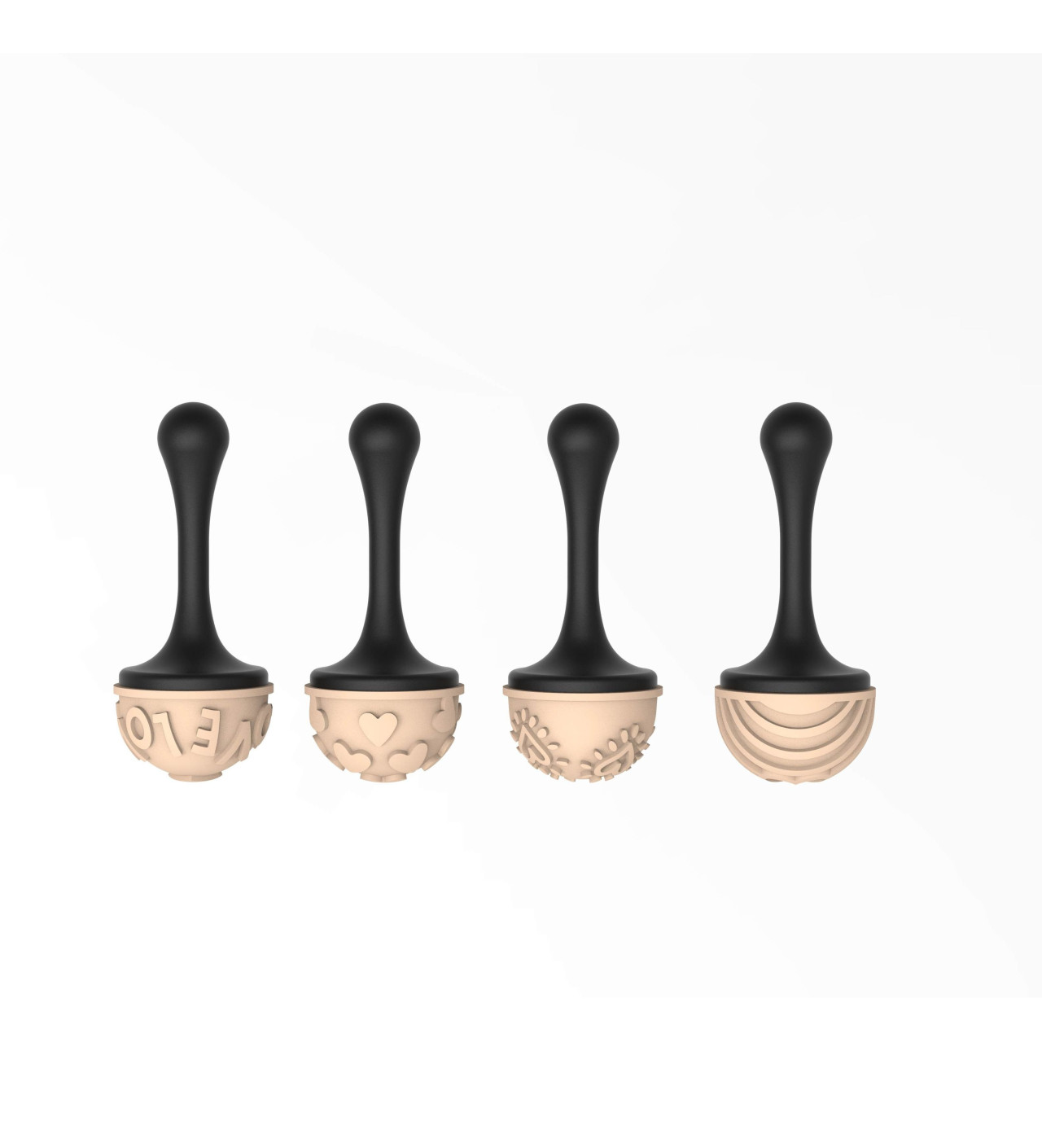 Les tampons en silicone pour chocolat sont faciles à utiliser grâce à leur manche ergonomique. Une simple pression et vos créations se retrouveront estampillées d’entrelacs de cœurs et de mots doux.