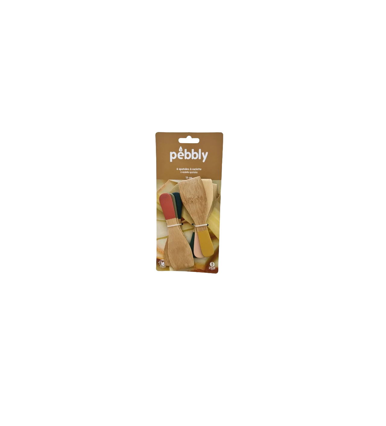 Lot 6 Spatules Raclette Bambou Colorées Pebbly