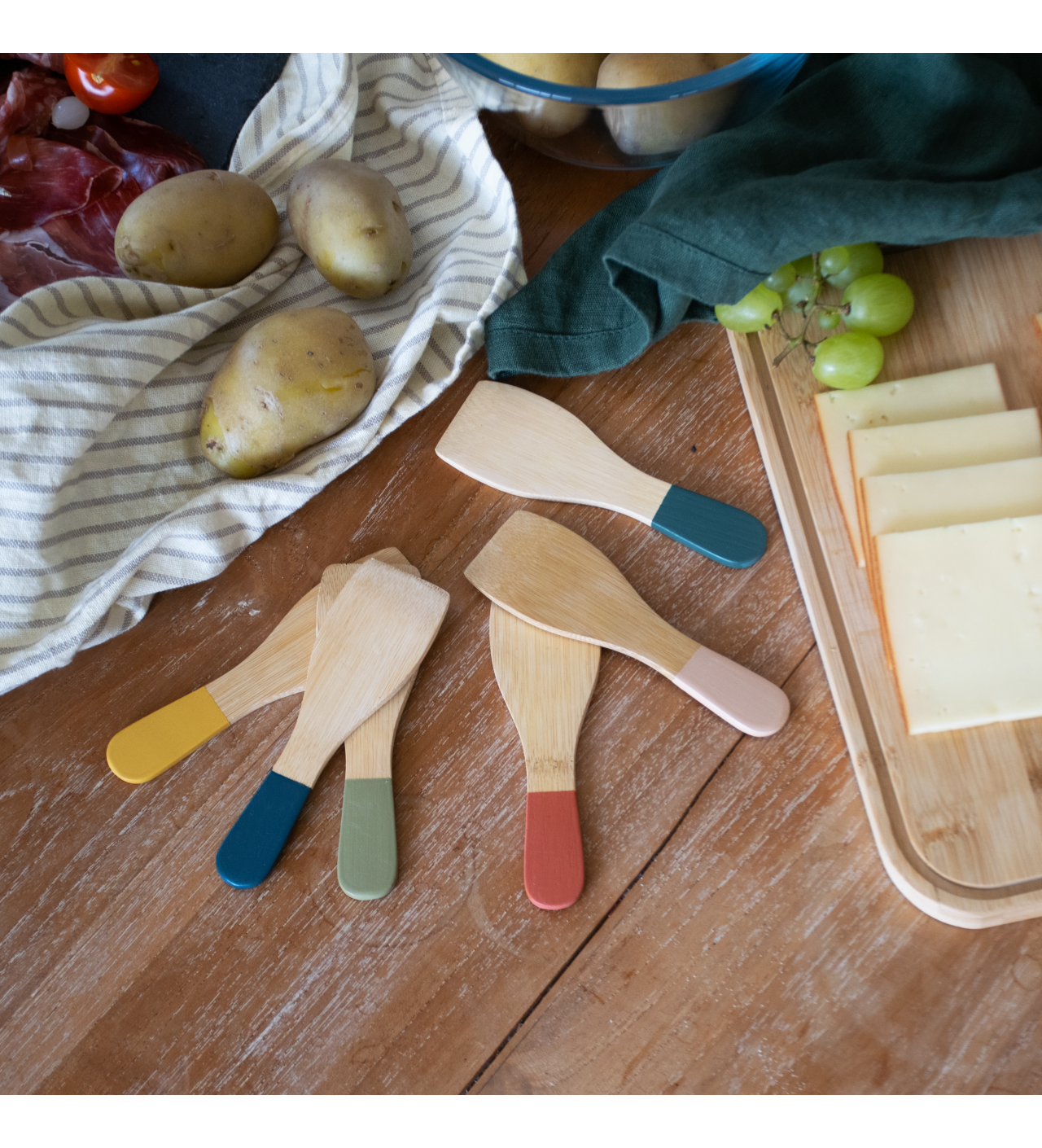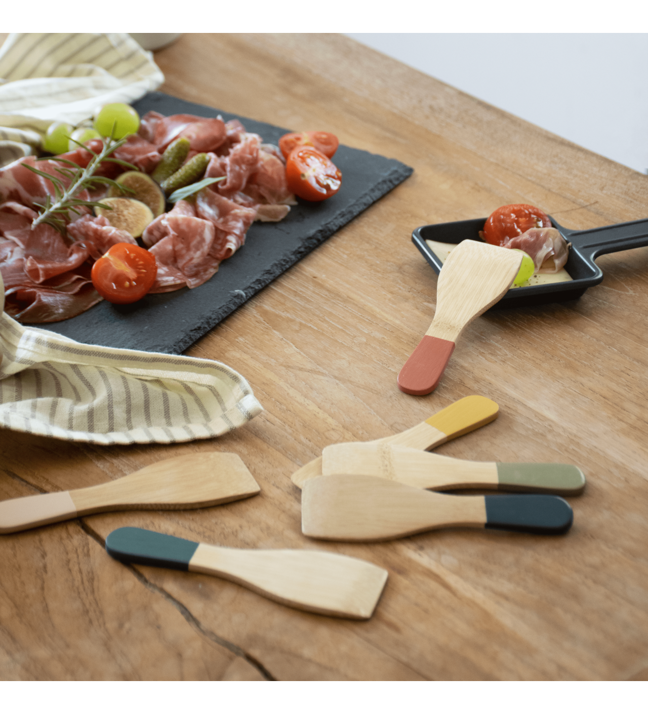 Avec les spatules à raclette bambou, apportez de la couleur à votre raclette party !