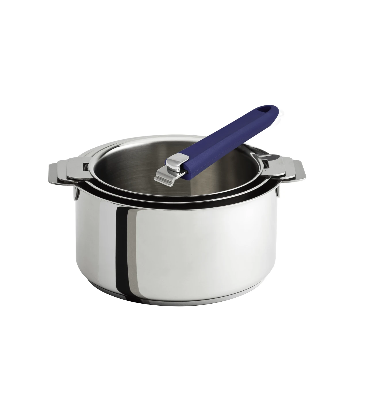 Lot de 3 Casseroles inox avec Poignée Bleue Mutine Amovible Cristel