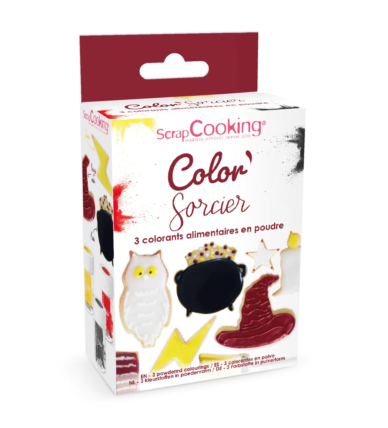 Ce lot de 3 colorants naturels va vous permettre de colorer vos préparations ! Le lot est composé de 3 colorants aux teintes variées de jaune, rouge, et noire rappellent le monde des sorciers. Fabriqués en France, les colorants alimentaires en poudre sont inspirés du monde de la magie pour vous permettre de créer des desserts colorés et ensorcelés !