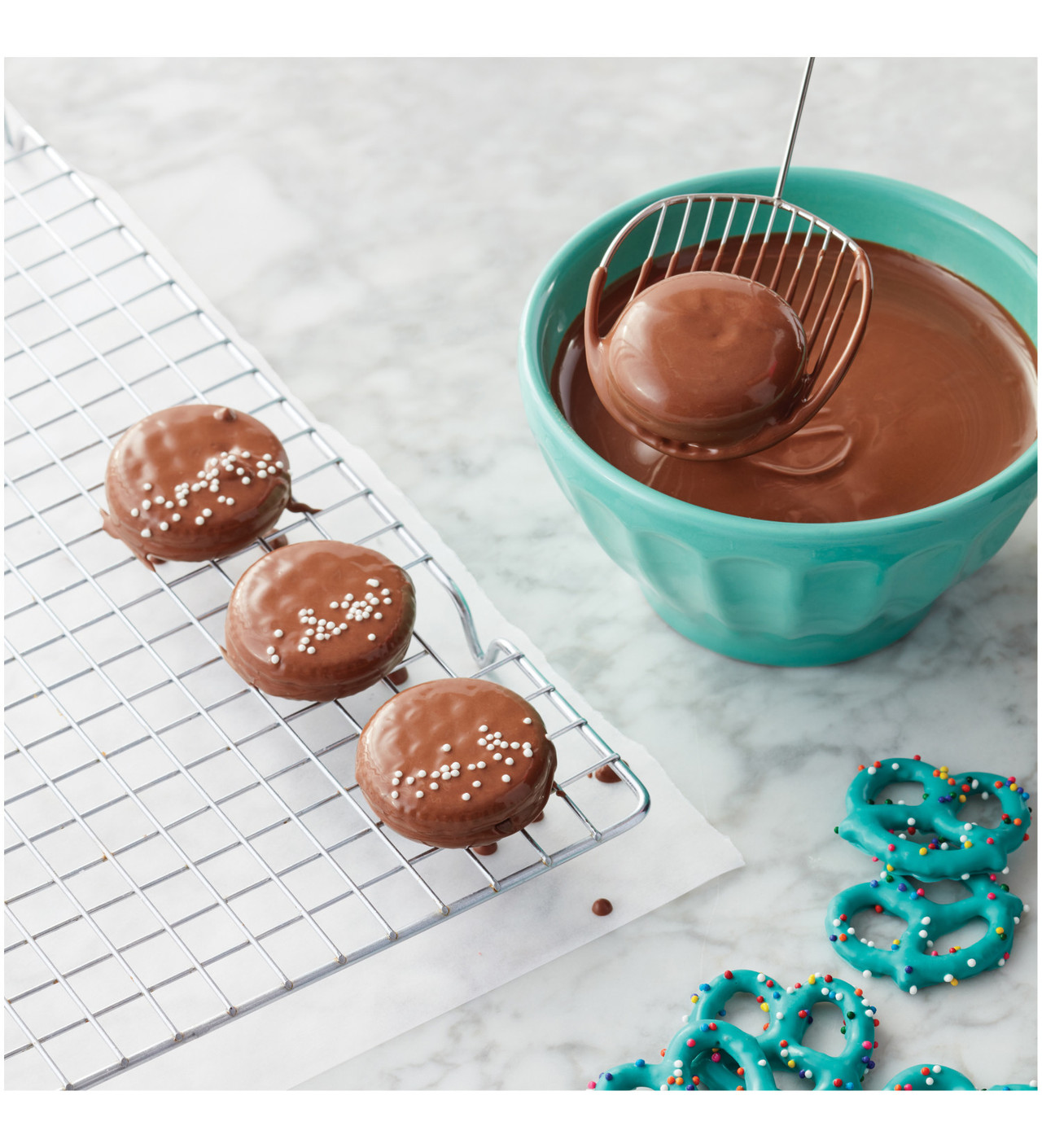 Parfaite pour enrober vos créations de Candy Melts ou d’autres enrobages fondus, cette louche vous garantit un résultat lisse et uniforme. Sa forme large avec angles relevés offre une stabilité accrue, permettant d’enrober avec précision sans faire tomber votre création gourmande. Le manche incliné de cette louche en inox facilite l’utilisation et vous permet de travailler confortablement, même avec des quantités importantes.
