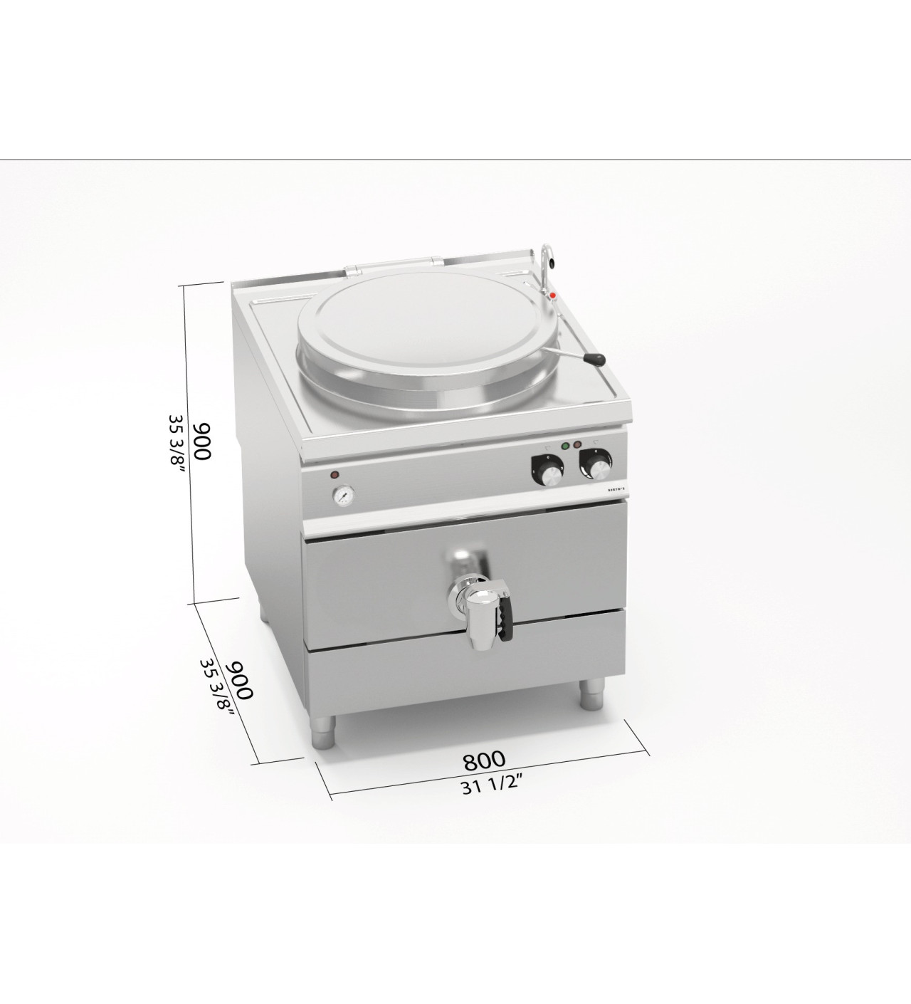 Il est bien entendu essentiel de prendre en compte le côté sécurité d'une marmite électrique lorsque l'on travaille dans un milieu aussi exigeant que la restauration. C'est pourquoi la marmite 150L est équipée d'un indicateur de pression, ainsi que d'un voyant de ligne et d'atteinte de température. Vous constaterez également que le robinet d'évacuation est pourvu d'une poignée athermique afin de prévenir toute brûlure. La distribution de la puissance et la température de la cuve sont, quant à elles, gérées par deux boutons de commande distincts, vous assurant ainsi un meilleur contrôle de la marmite électrique professionnelle.