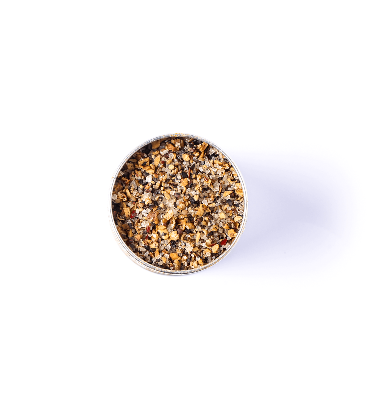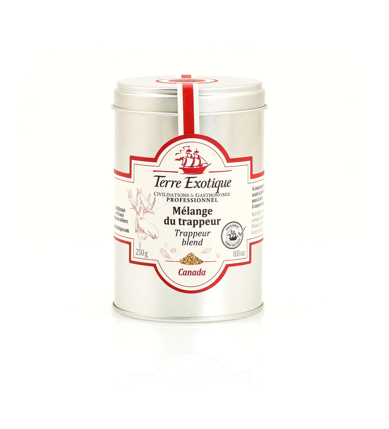 Le mélange du trappeur est né au Canada par accident : un trappeur a fait tomber son pot de sel dans son sucre d'érable. Après quelques évolutions et ajouts d'ingrédients tels que le poivre noir ou la coriandre, le mélange s'est perfectionné et offre ainsi une large palette d'arômes. Dès l'ouverture de la boîte, vous découvrirez un fumet qui vous transportera dans un chalet au cœur de la forêt canadienne.