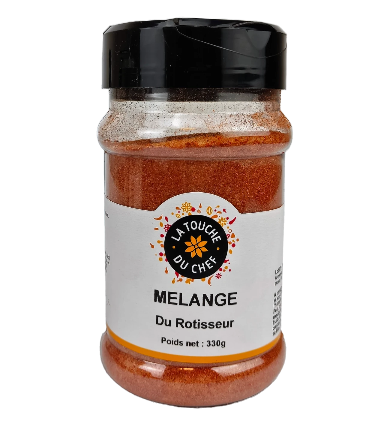 Apportez une appétissante couleur dorée à vos viandes en la badigeonnant du Mélange Rôtisseur La Touche du Chef. Celui-ci se compose de sel, piment, carvi, ail, coriandre et curcuma. En bouche, le mélange pour rôtir se révèle chaud et épicé, mais pas piquant.