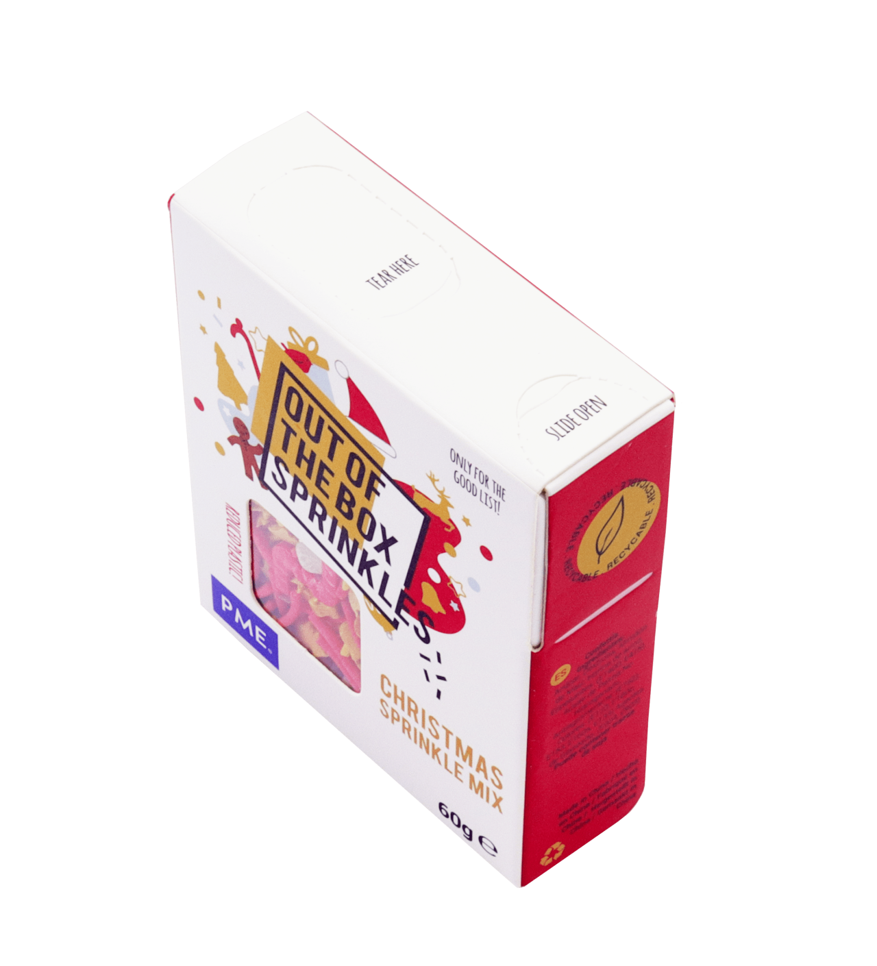 Pour vous aider à saupoudrer facilement ces splendides sprinkles de Noël, la boîte de 60g est équipée d’une ouverture pratique, qui verse et se referme aisément pour préserver toute la fraîcheur de vos décorations en sucre. De quoi ravir vos convives tout l’hiver avec des desserts joliment décorés de vermicelles remplis de la magie de Noël.