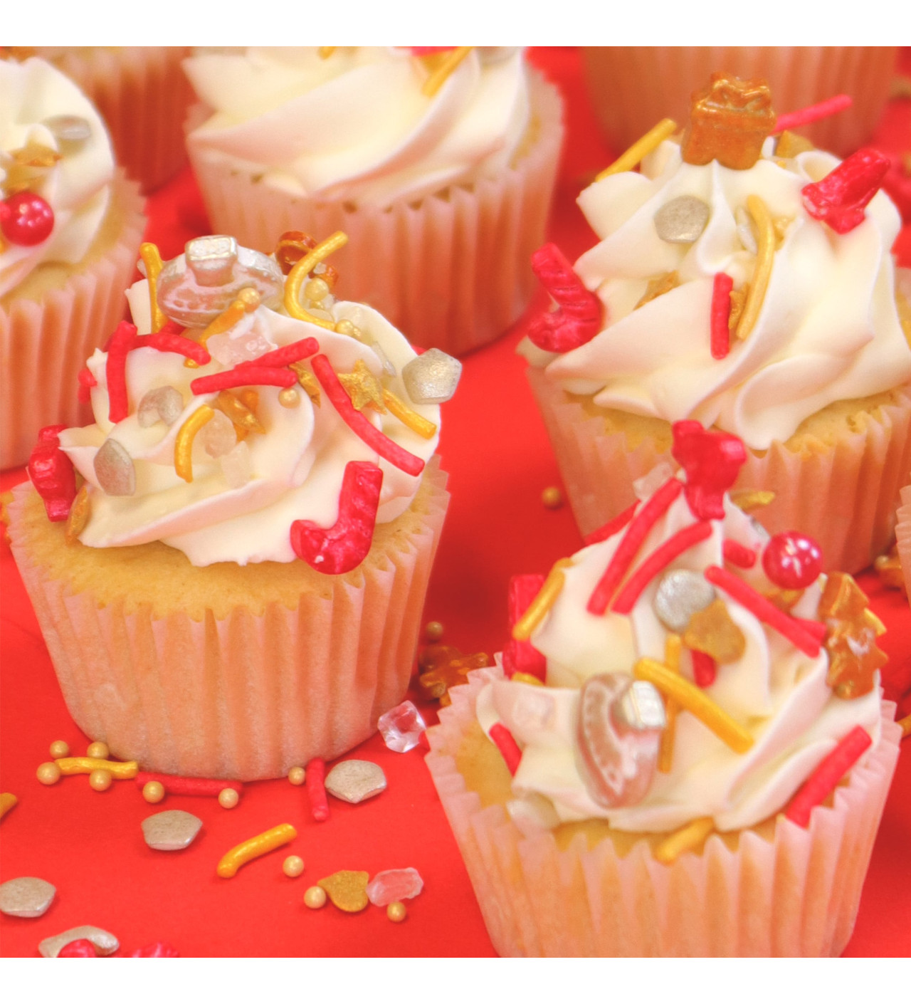 Comme de petits flocons enchantés, ces décors en sucre viendront se déposer délicatement sur vos gâteaux, biscuits et bûches pour les rendre encore plus éblouissants à l’occasion des fêtes. Vous y retrouverez de magnifiques cadeaux dorés, de charmants sucres d’orge rouges, de scintillantes boules de Noël blanches et bien d’autres décorations féériques qui émerveilleront petits et grands.