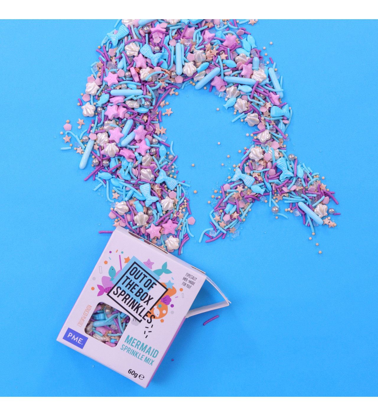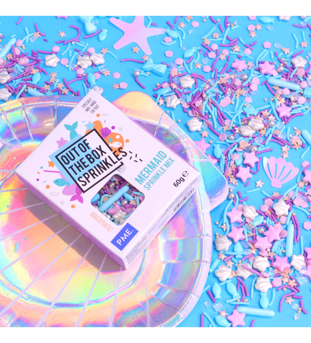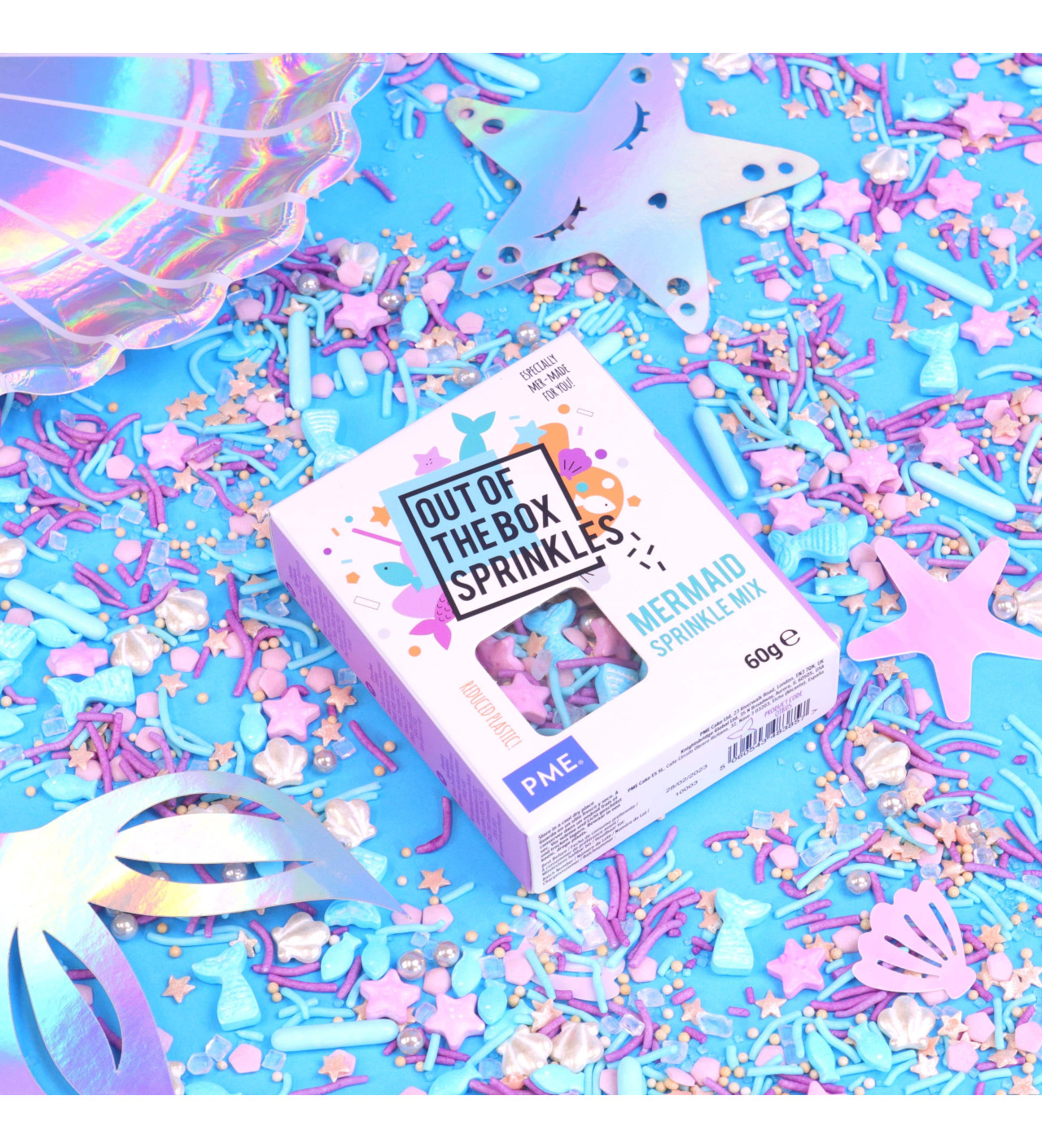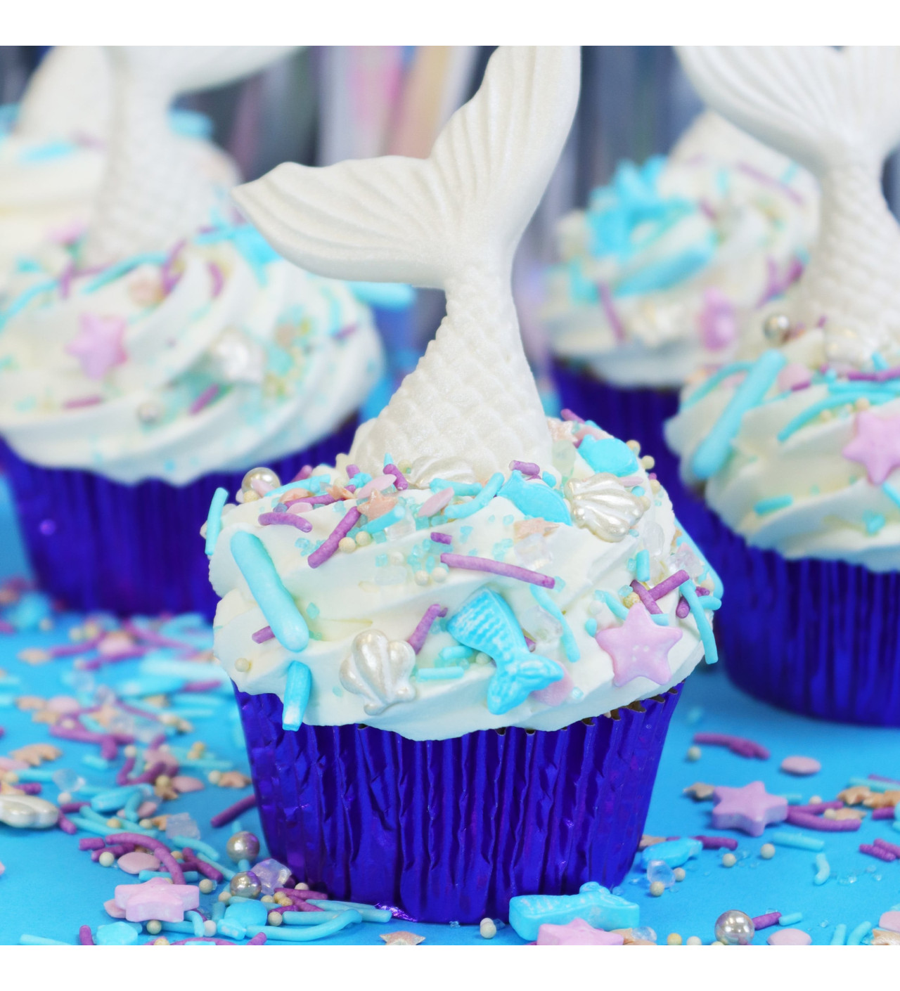 Comme de petits coquillages colorés échoués sur le rivage d’une île imaginaire aux couleurs fantastiques, ces décorations en sucre PME plongent dans l’univers des sirènes. Célébrant ces douces créatures de la mer, ces vermicelles Sirène seront parfaits pour accompagner les fêtes gourmandes sur le thème de l'océan.