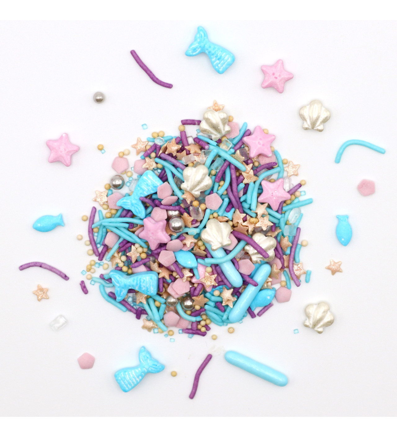 Ils apportent une touche joyeuse et festive aux créations sucrées, sublimant les gâteaux, les cupcakes et biscuits qui croiseraient leur chemin. En versant une poignée de ces petits joyaux des mers, vous y découvrirez de délicats coquillages nacrés, accompagnés d’étoiles de mer roses et de poissons bleus.