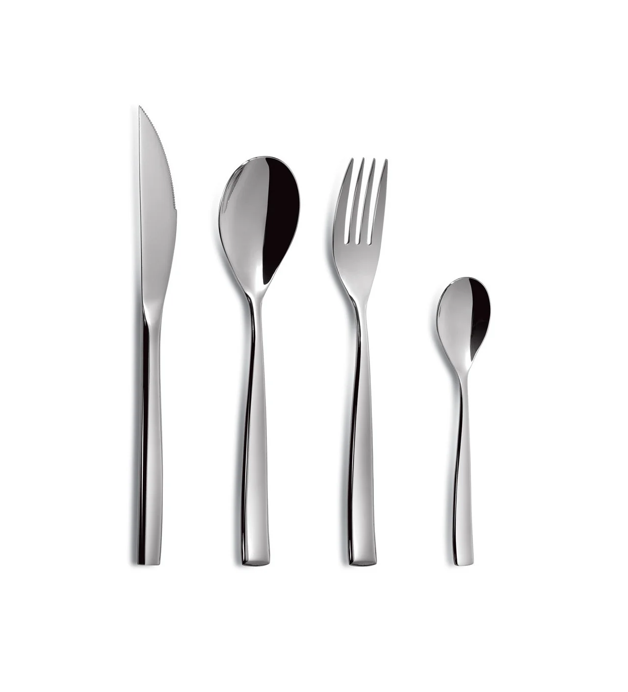 Les couverts de la ménagères Ibiza sont en acier inoxydable 18/10 (18 % de chrome pour résister à l'oxydation et 10% de nickel pour améliorer la neutralité alimentaire du matériau). L'acier inox 18/10 est considéré comme le meilleur acier pour des couverts de qualité, pour sa robustesse et sa neutralité alimentaire (il ne craint pas le jus de citron par exemple).