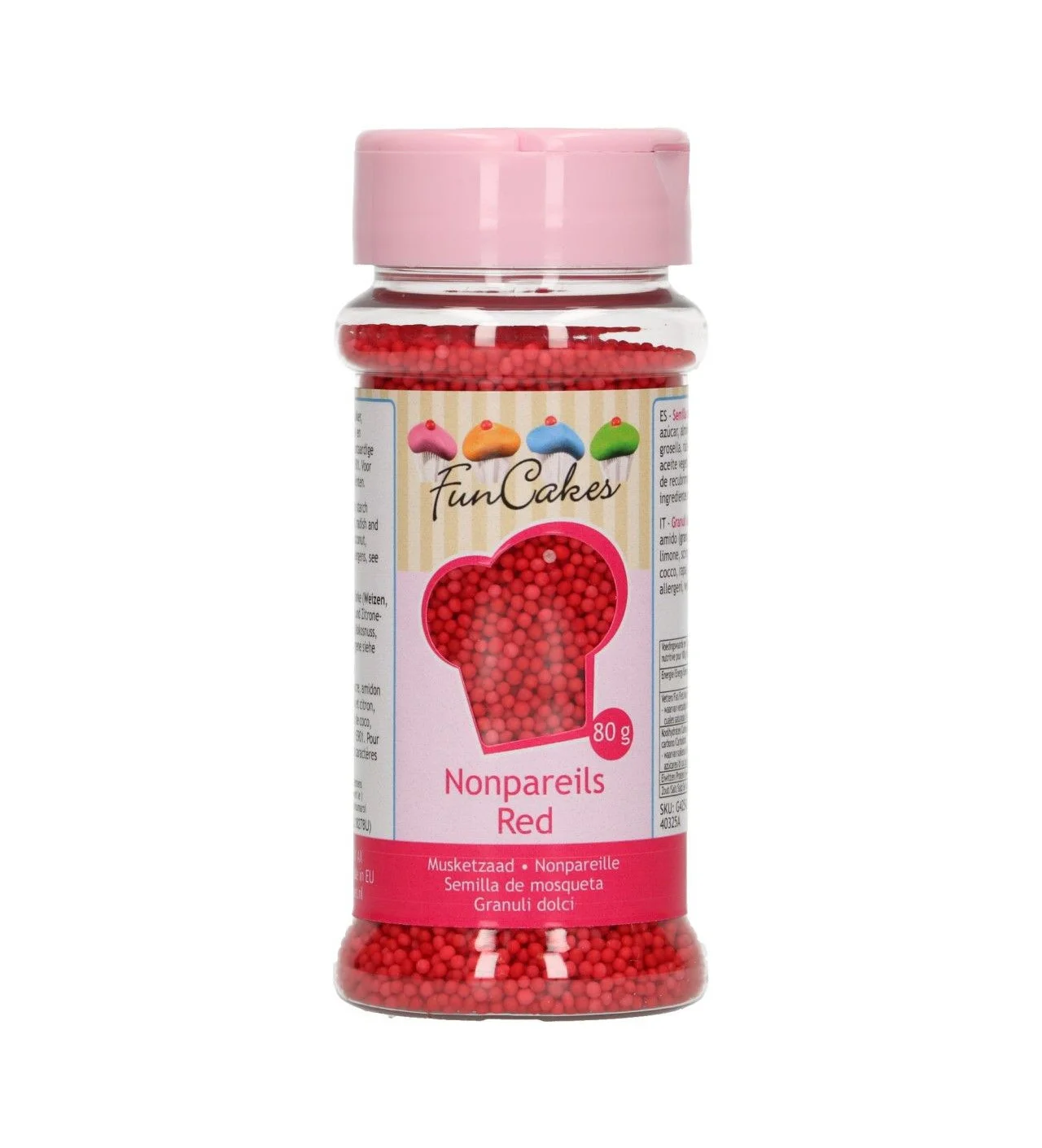 Le rouge, la couleur de l'amour, dans un flacon de mini-billes Funcakes pour des gâteaux toujours plus beaux ! Optez pour ces 80 g de mini-billes rouges qui ajouteront du croquant sur vos préparations : cupcakes, donuts, etc.