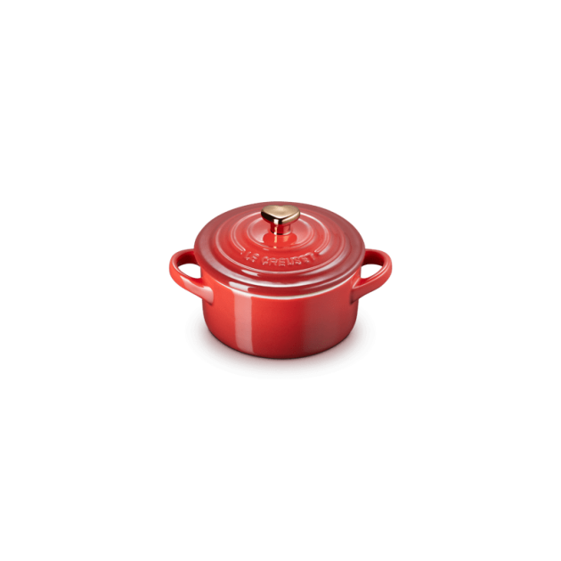 Mini Cocotte en Céramique Ronde Cerise Bouton Or Cœur 10 cm 0,25 L Le Creuset