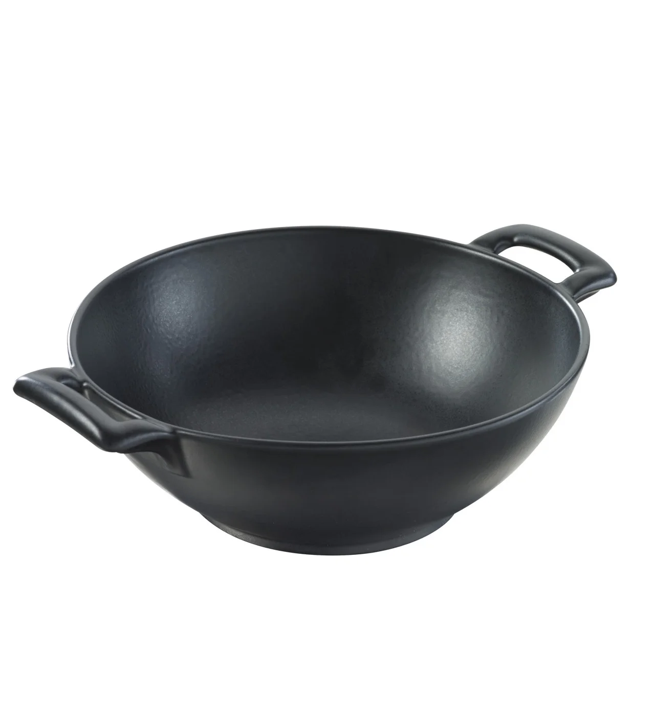 Tout en porcelaine, le grand bol wok noir Revol est recouvert d'une couche d'émail spécial qui permet de lui donner un aspect de fonte tout en conservant les avantages de la porcelaine.