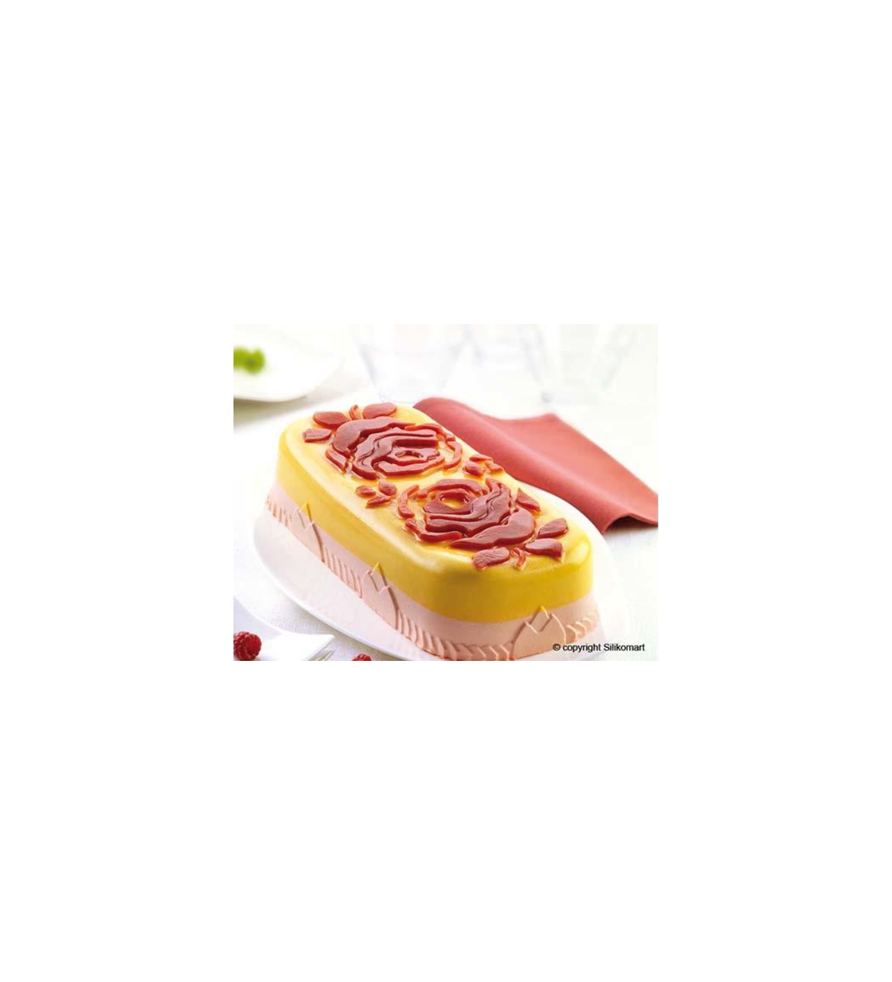 Pourquoi ne pas apporter une petite touche d'originalité à vos réalisations ? Avec le moule à cake en silicone avec roses 300x145mm vos cakes ne passeront plus inaperçus. Utilisez-le comme un moule traditionnel, seule différence, les formes incrustées sur ce moule silicone dessineront des roses sur la partie supérieure de votre cake une fois cuit ou sorti du froid.