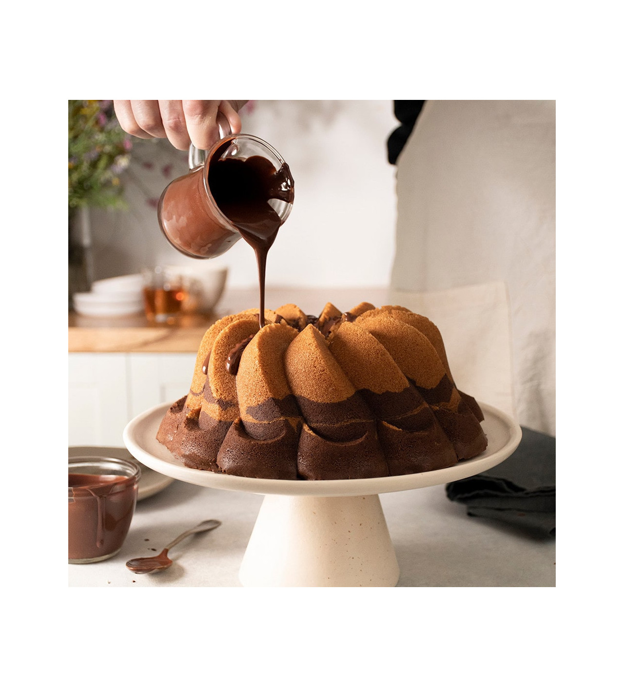 Que vous le laissiez au naturel, ou que vous choisissiez de décorer le gâteau Bundt, son aspect alléchant attirera le regard des gourmands. Ce qui est sûr, c’est qu’un glaçage glisserai sur les motifs du gâteau en suivant ses courbes graciles pour un effet plus délicieux encore.