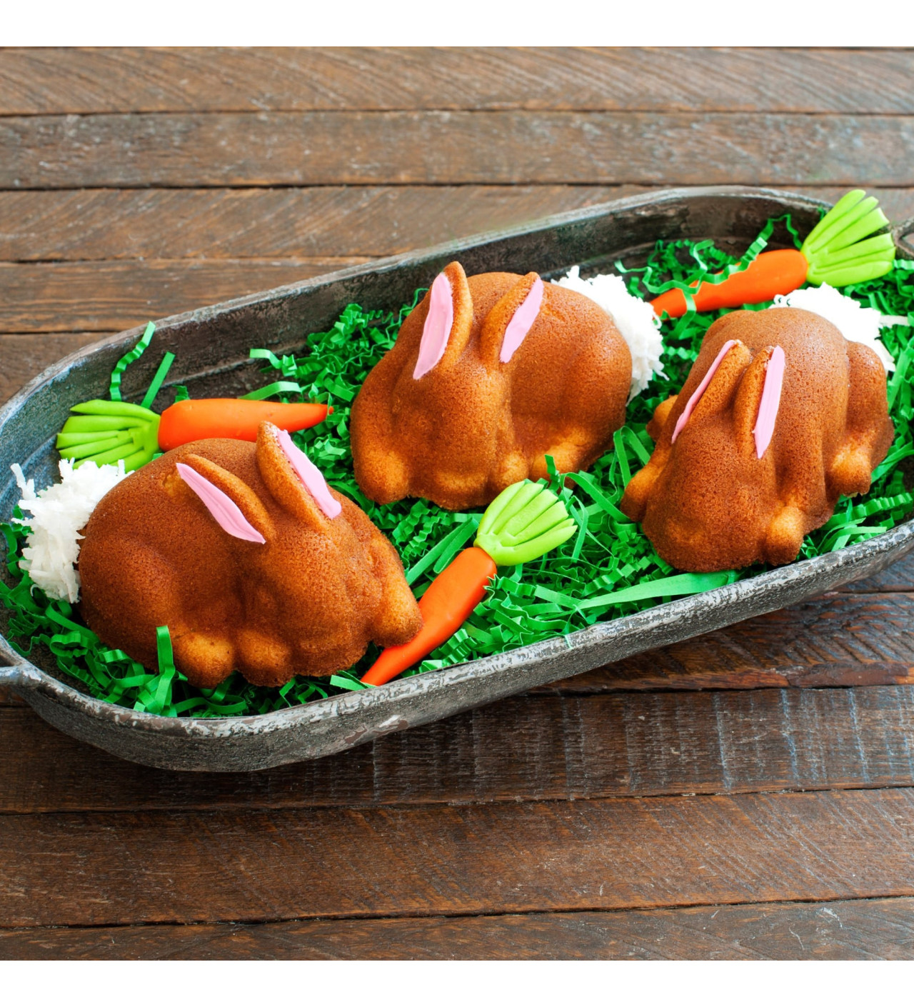 Pour atteindre un tel niveau de détails sans peine, équipez-vous du moule lapins Nordic Ware. Vous trouverez blottis sur ce moule à gâteaux six petits lapins tranquillement assoupis. Il ne vous restera alors qu’à remplir les six empreintes d’une pâte à gâteau savoureuse et d’enfourner le tout au four. La composition en fonte d’aluminium du moule Nordic Ware assure une répartition optimale de la chaleur, tandis que le revêtement intérieur offre une coloration dorée et un démoulage aisé. Ce moule anti adhésif de qualité pourra aussi être réutilisé à volonté toute l’année et pour les années à venir puisqu’il est garanti à vie.