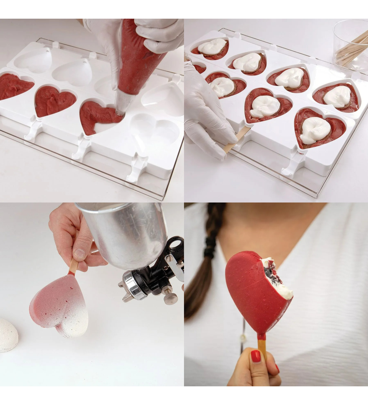 Moule à glace silicone "Coeur" 8 empreintes avec bâtonnets SilikoMart