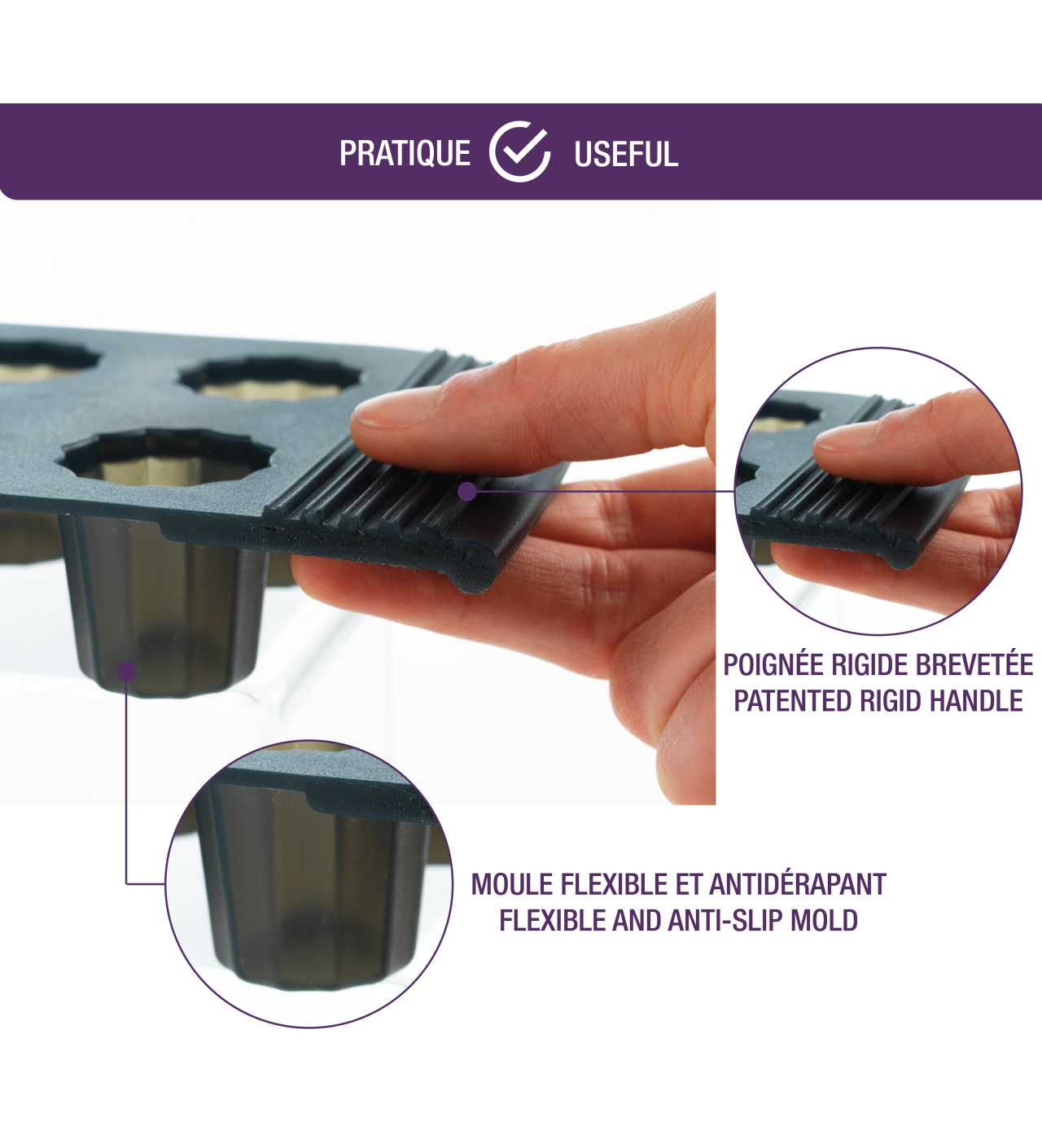 De plus, les poignées rigides vous assurent une manipulation facile de votre moule en silicone. Le moule Mastrad étant gris translucide, vous pourrez à tout moment contrôler la cuisson de vos préparations.