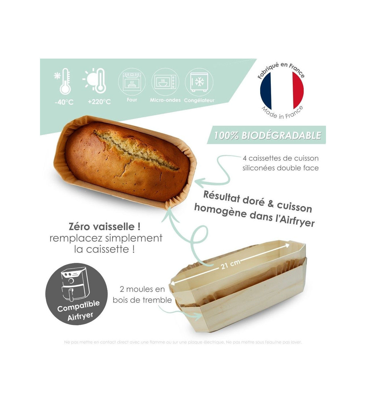 Cake salé aux légumes ou sucré au chocolat, toutes vos recettes seront sublimées par une cuisson parfaite. Pour cela, nous vous proposons un lot de moules à gâteaux en bois accompagnés de caissettes siliconées.
