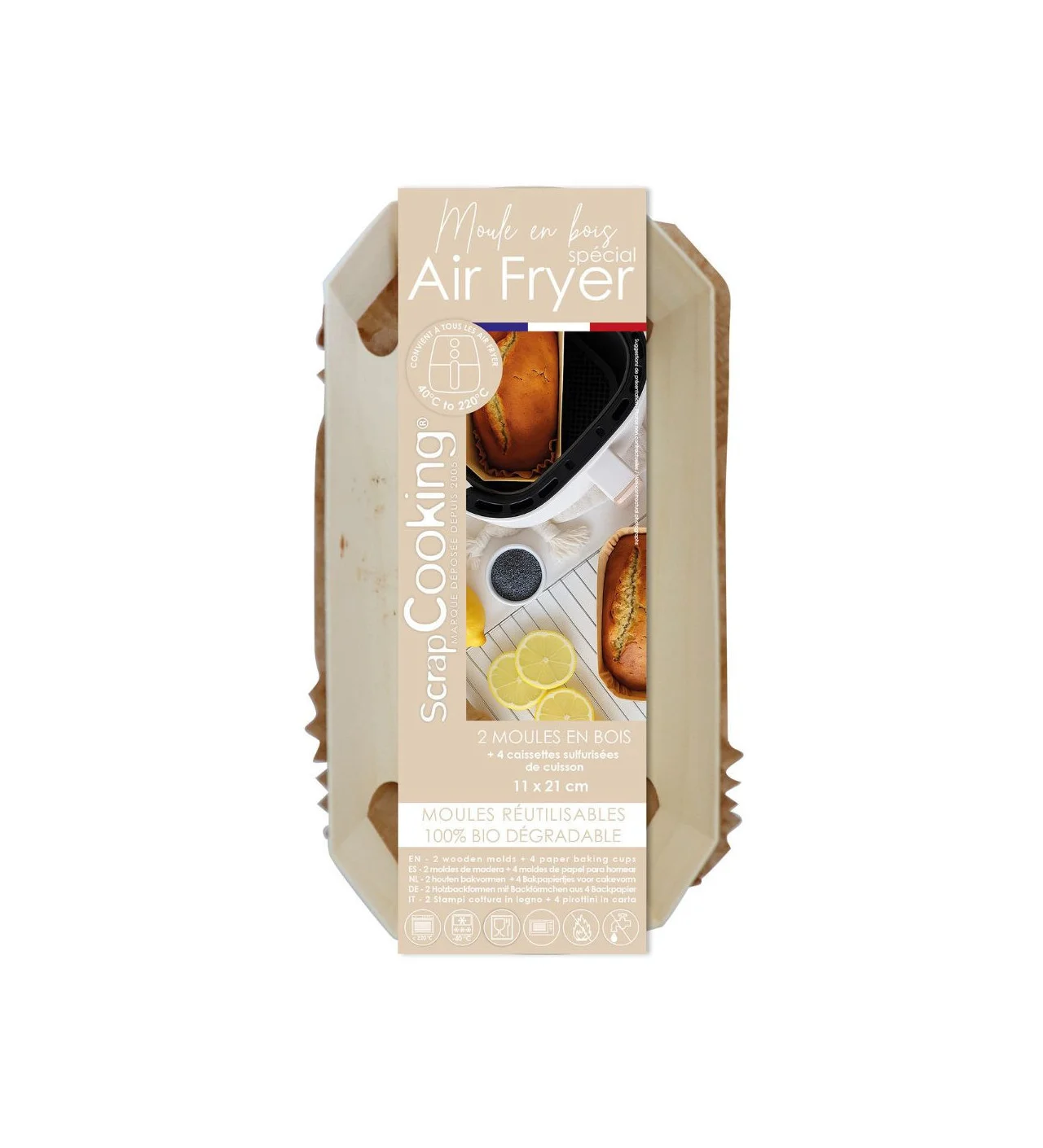 Moule Air Fryer en Bois Rectangle et Caissettes 20,5 x 11 cm (x2) Scrapcooking