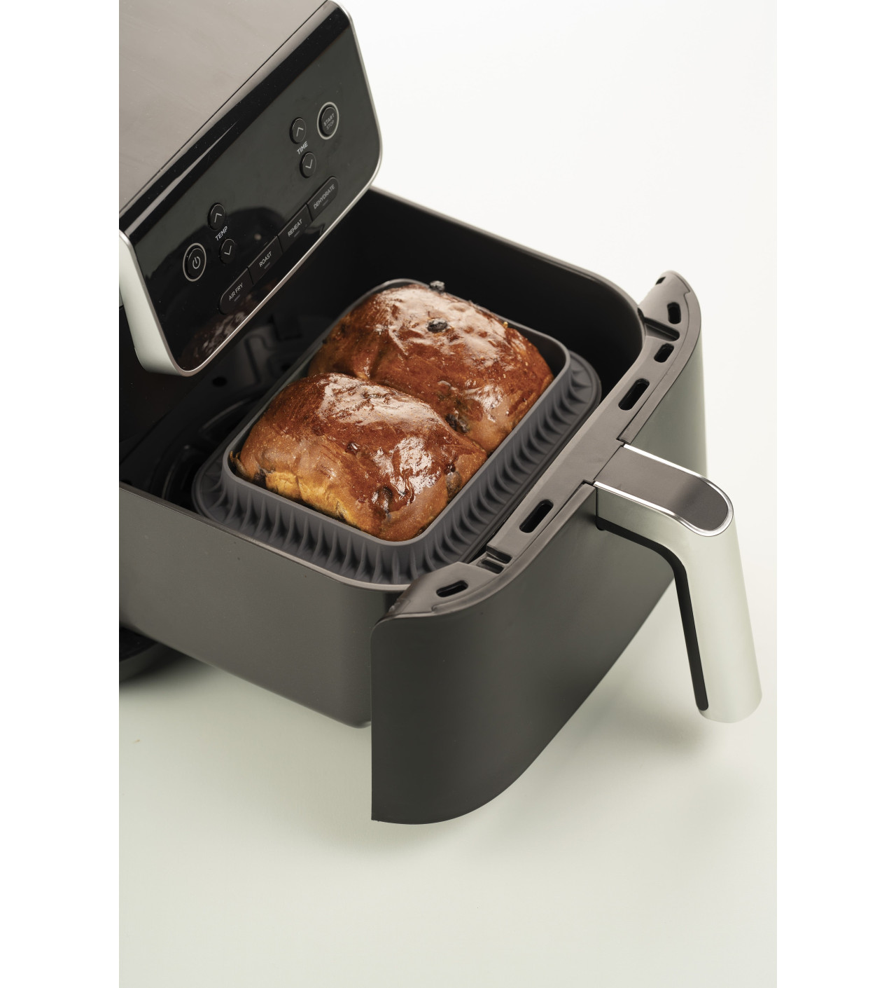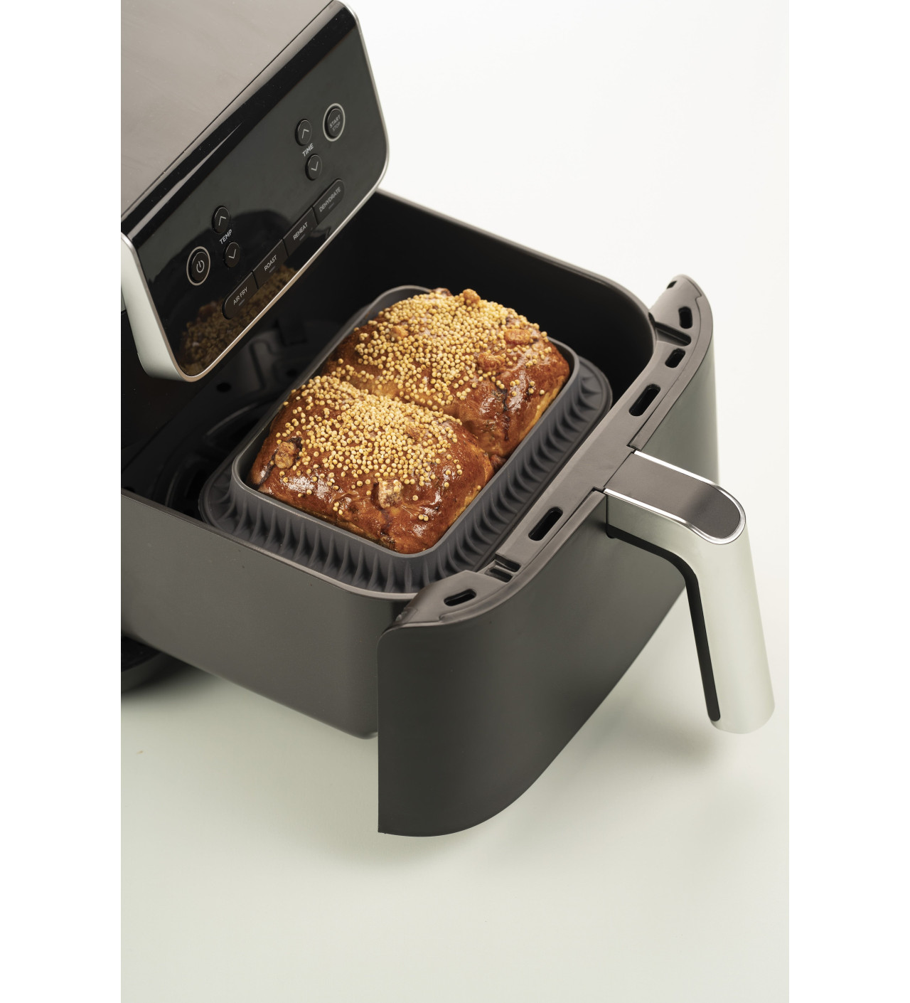 En effet, ce moule Silfry Silikomart assure un entretien plus facile de votre friteuse, ainsi qu'une excellente performance de cuisson. Les perforations sur les cotés du moule pour pain permettent une bonne circulation de l'air. Le moule est facile à saisir pour l'enlever de l'air fryer après la cuisson.