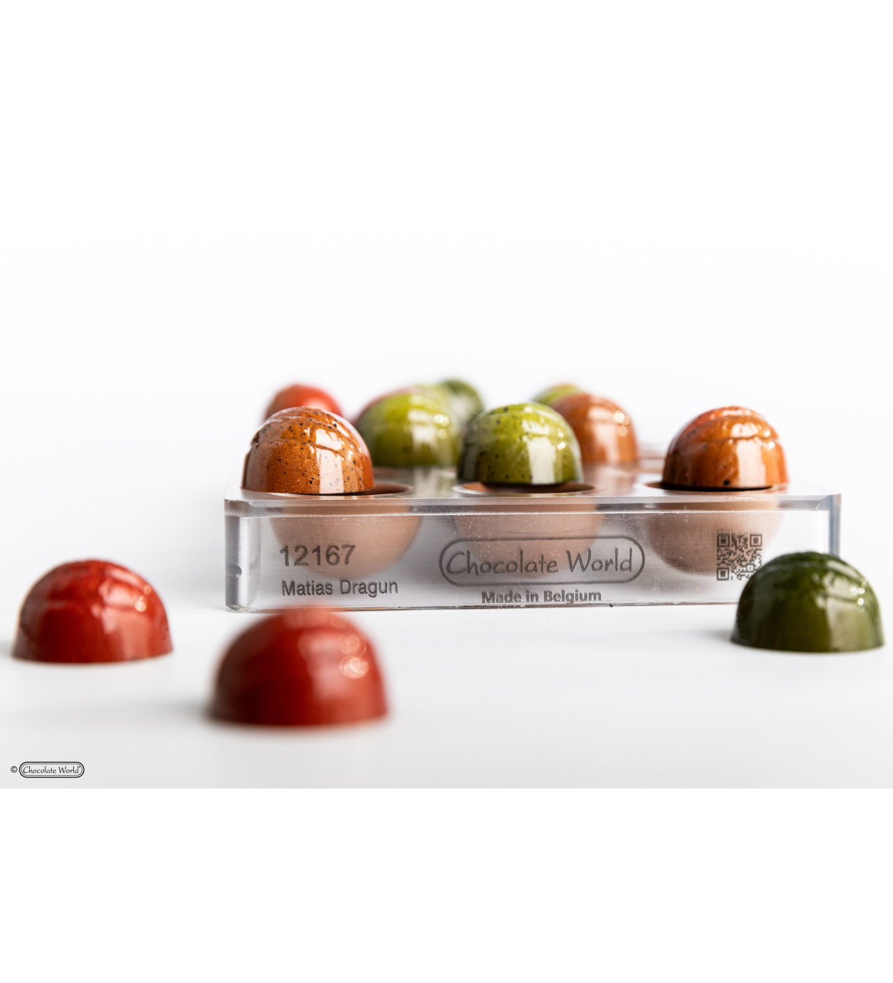 Ce moule en polycarbonate s’adapte à un usage particulier comme professionnel et vous garantit un aspect alléchant. Vos chocolats seront aussi brillants que délicieux grâce à ce moule à chocolat Chocolate World.