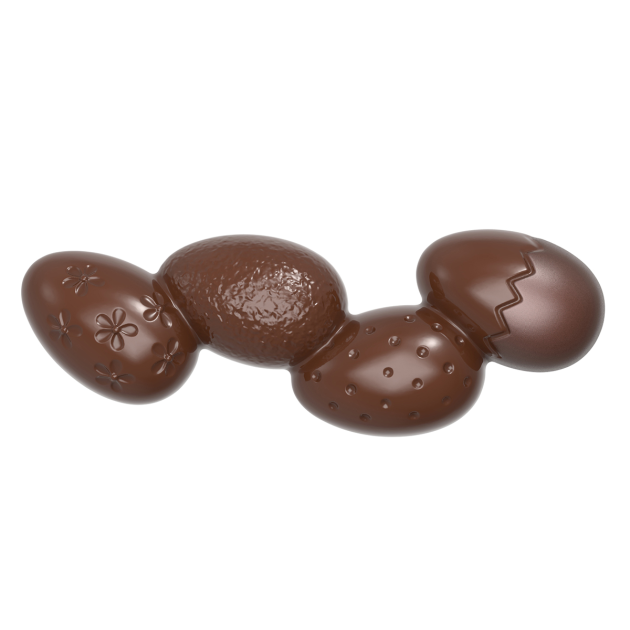 Ce modèle au format inédit revisite les traditionnels chocolats de Pâques en proposant une présentation moderne et gourmande, idéale pour se démarquer. Chaque empreinte représente une barre composée de quatre œufs alignés, offrant un visuel original pour Pâques.