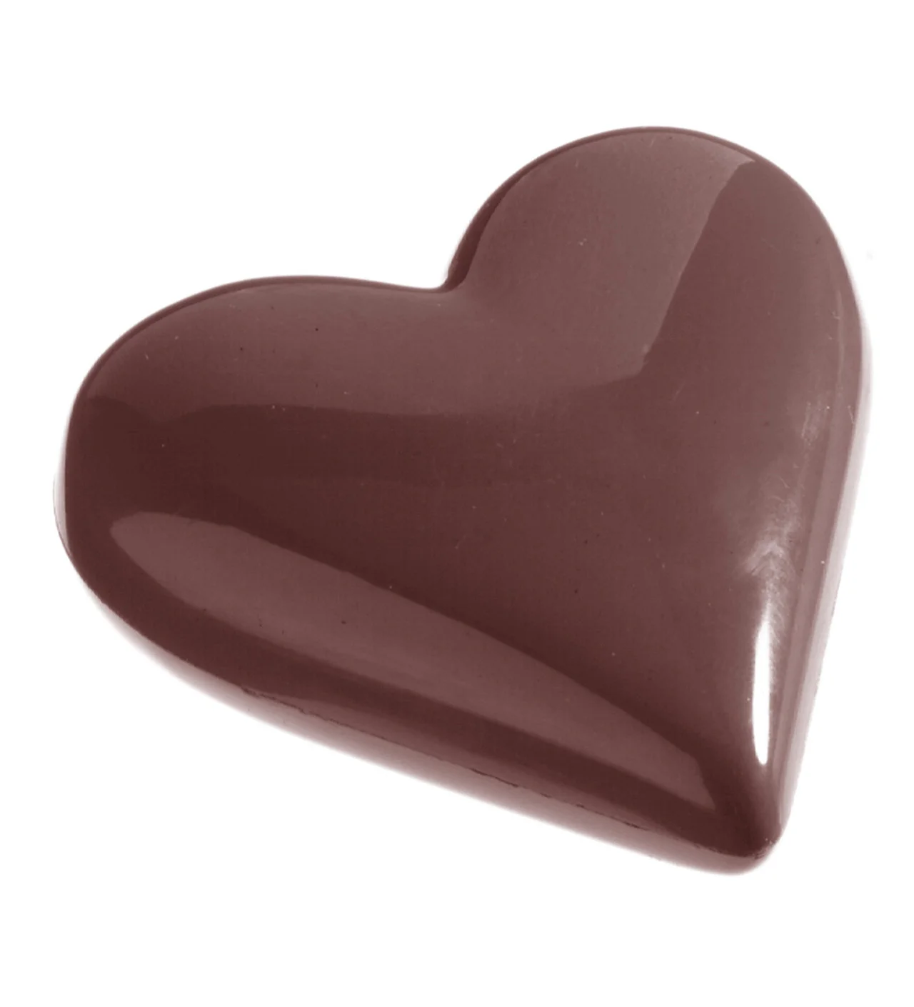 Avec un chocolat de couverture bien tempéré vous obtiendrez des chocolats en forme de cœur à la surface lisse et brillante. Et pour y ajouter une touche d'originalité et de couleur, vous pouvez saupoudrer des poudres colorées sur le fond des empreintes ou bien vous servir d'une feuille de transfert. Symbole de l'amour, les cœurs du moule en polycarbonate sauront ravir les amateurs de chocolat.
