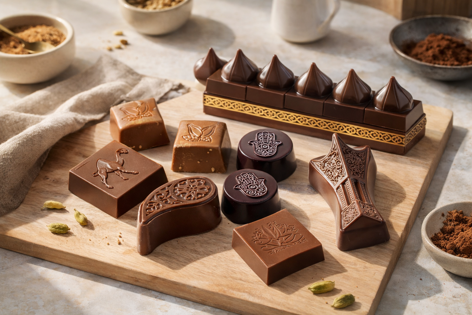 Chocolate World vous propose une collection de moules à chocolat inspirés de l'Orient. Ces moules, aux détails élégants et raffinés, vous feront voyager dans les contes envoûtants des Mille et Une Nuit. Laissez-vous tenter par ces moules qui vous permettront de façonner vos propres chocolats.