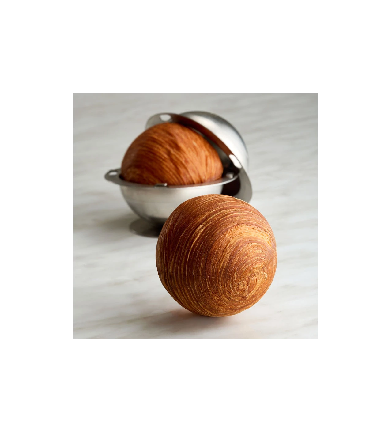 Conçu en deux parties, 2 demi-sphères qui une fois assemblées forment une boule ronde feuilletée, ce moule inox vous permet de donner vie à des croissants ronds et élégants qui raviront les papilles. Créé en Italie, la marque Pavoni vous invite à revisiter la tradition française avec une touche de créativité.