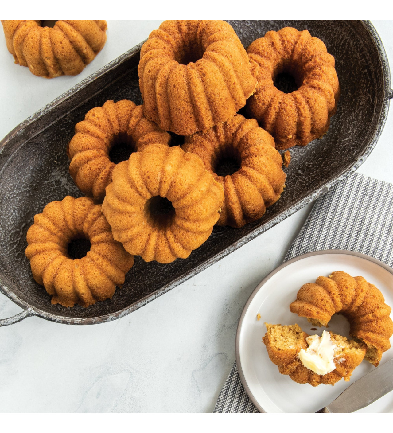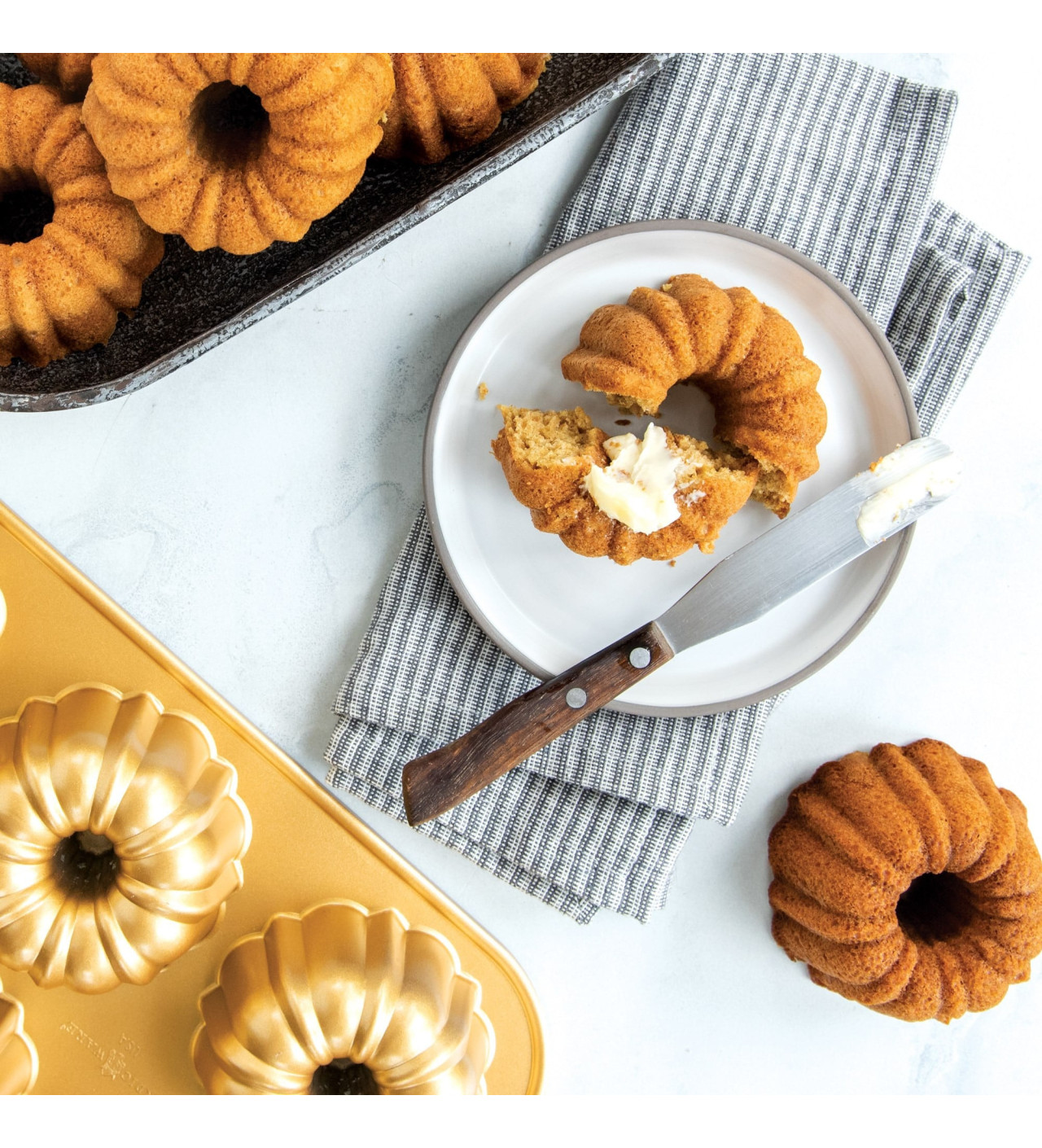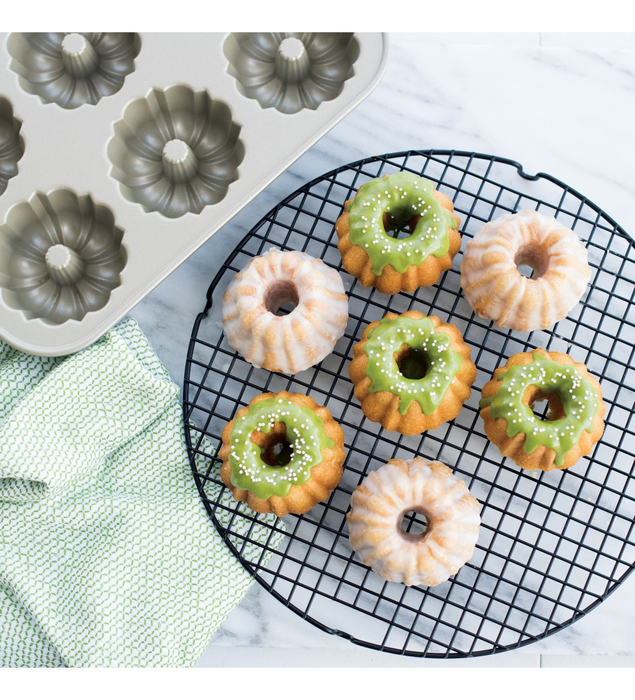 Lorsque vous souhaitez satisfaire le palet de chacun de vos invités tout en gagnant du temps en cuisine, tournez-vous vers Nordic Ware et son moule à mini Bundts. Comportant six empreintes à la forme gourmande, ce moule à gâteaux se démarque par sa performance.