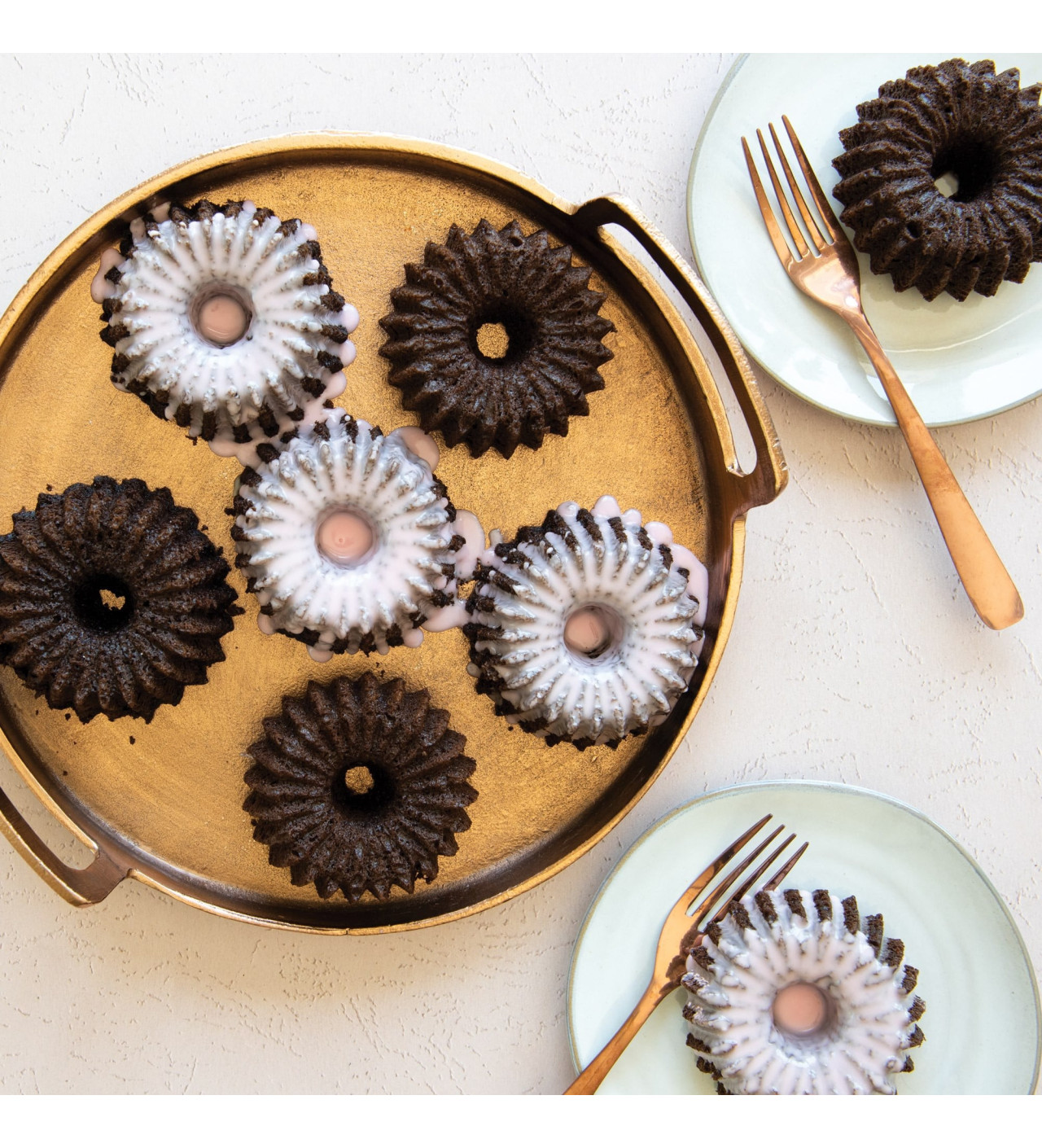 Le moule à mini Bundt brilliance est pourvu de six empreintes au design résolument moderne et pourtant inspiré de recettes traditionnelles. Idéal pour la confection de parts individuelles, ce moule en aluminium est synonyme d’une cuisson excellente. En effet, sa matière conduit la chaleur de votre four efficacement et la cheminée centrale de chaque empreinte permet une cuisson uniforme de vos gâteaux.