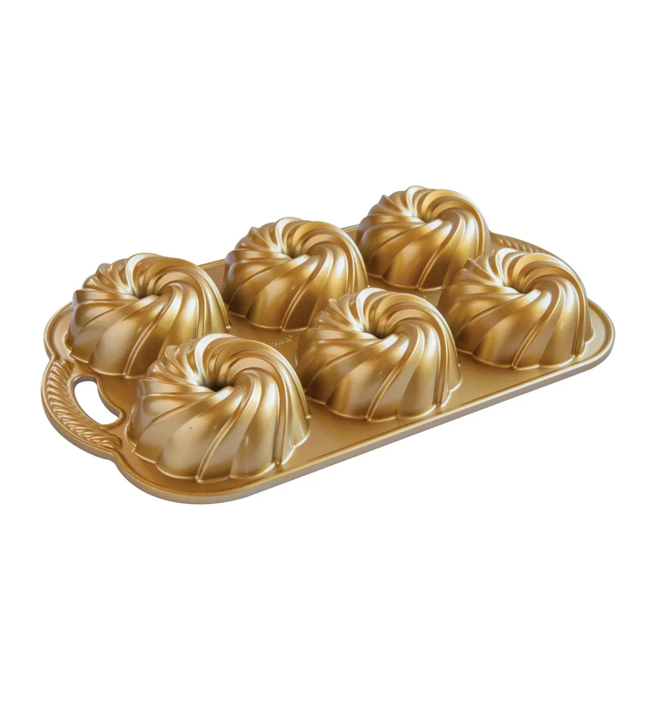 Moule Mini Bundt Tourbillon (x6) Gold Nordic Ware