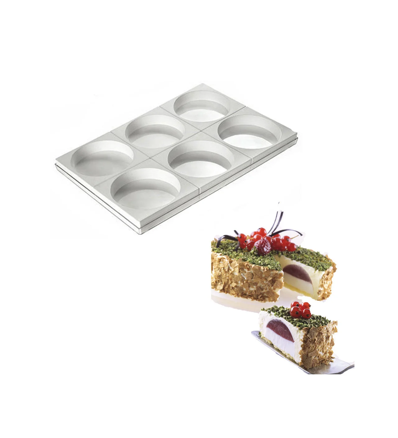 Réalisez des gâteaux originaux pour épater vos convives à Noël, Pâques ou pour un anniversaire grâce au Moule Silicone de 6 empreintes rondes Silikomart. Composé de deux parties, la partie souple contenant la préparation vous permet un démoulage facile sans risque que la pâte accroche au moule. De plus, le silicone permet un rangement facile de la plaque à empreinte dans vos placards pour optimiser l'espace. La seconde partie est une plaque de support en plastique pour permettre de déplacer et transporter plus aisément le moule en silicone. Cependant, cette plaque en plastique ne passant pas au four, il faut la retirer avant d'enfourner le tout.