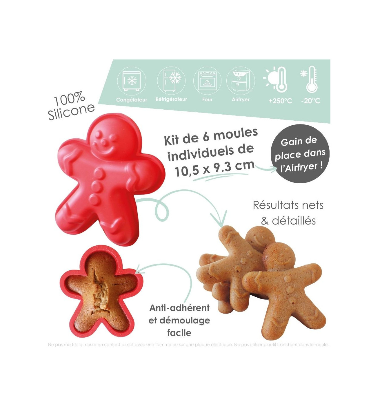 Moule Silicone Air Fryer Bonhomme Pain d'Épices 10,5 x 9,3 cm (x6) Scrapcooking